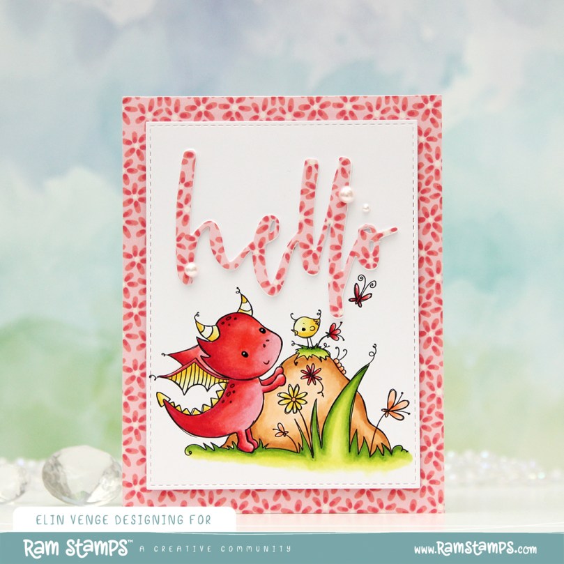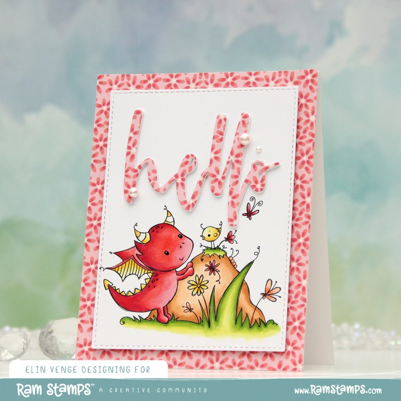 Hi, crafty friends. Today’s release day over at Rachelle Anne Miller. This month’s theme is Year of the Dragon. I’m a big fan of dragons, and I couldn’t resist this cutie with his little chick friend. This is the Earth stamp, there’s also wood, metal, water and fire, as well as a new pack of digital patterned paper, which I also incorporated into my design.