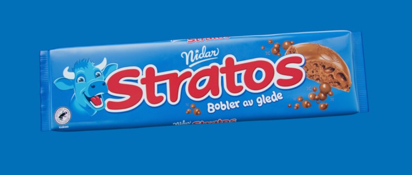 The Stratos cow is a very happy blue card, so it’s not entirely the same, but I don’t think it’s too much of a stretch with the blue wrapper and the cow on the card.