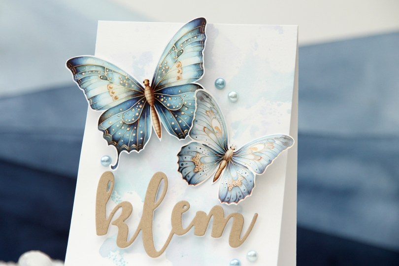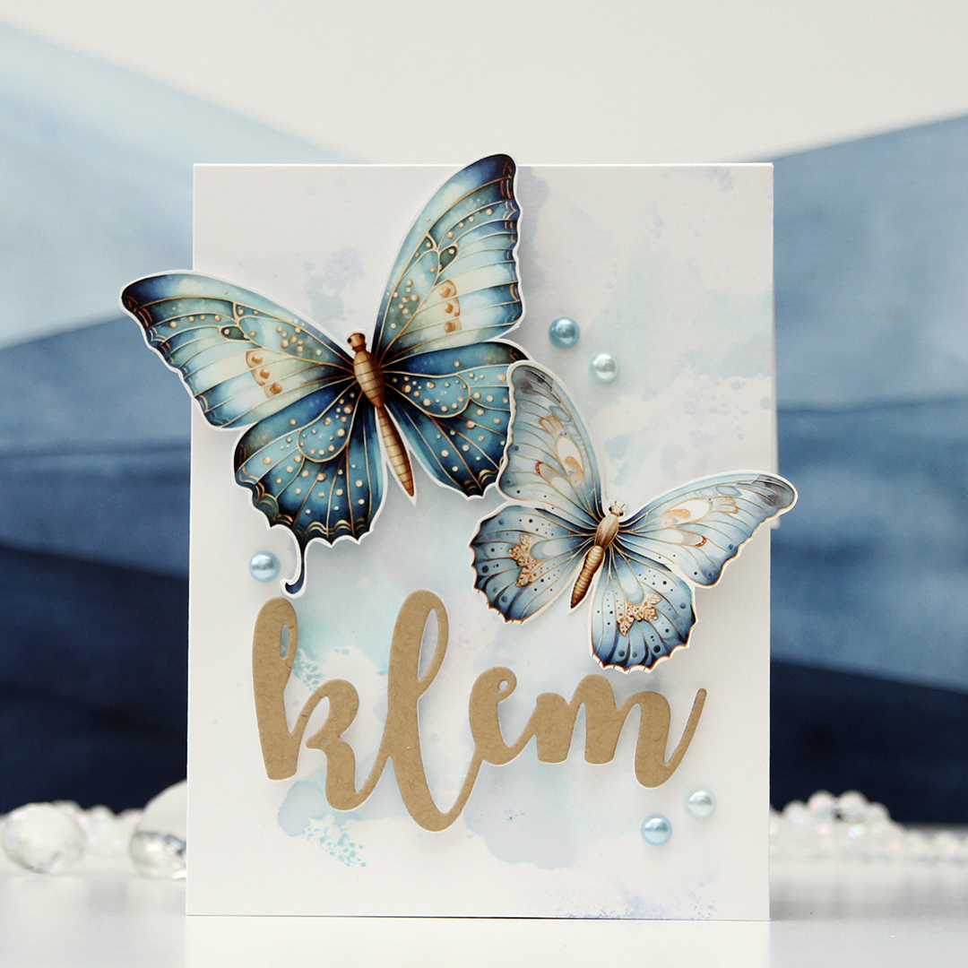 Hi, crafty friends. I’m back today with a card made for the Kort & Godt galleri blog. They’ve just released some new image sheets, and these butterflies stole my heart, I love them! And they’re blue (there’s one with a more green vibe too)!!!
