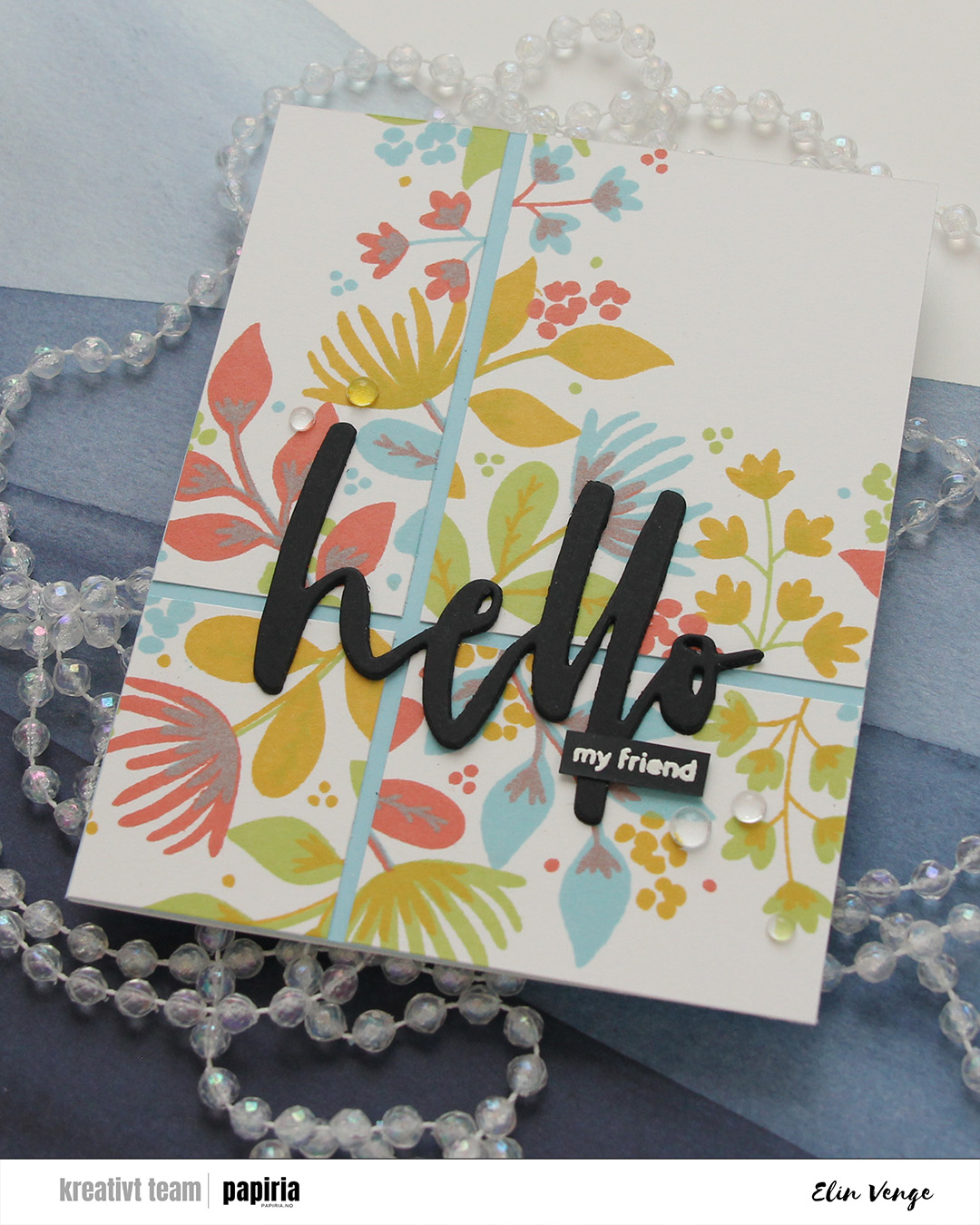 I used the Waterbrush Hello die from Altenew to create my sentiment for this card. I stacked three black die cuts for a bit of dimension and stamped and white heat embossed the sub sentiment from the Serene Blooms stamp set from Altenew. I’ve just replaced my VersaMark pad, so the letters are a bit thicker than I’d like, but i really did need a new pad. I finished off with a few dew drops from C9. There was a lot going on with the background already, and the dew drops are a bit more subtle.