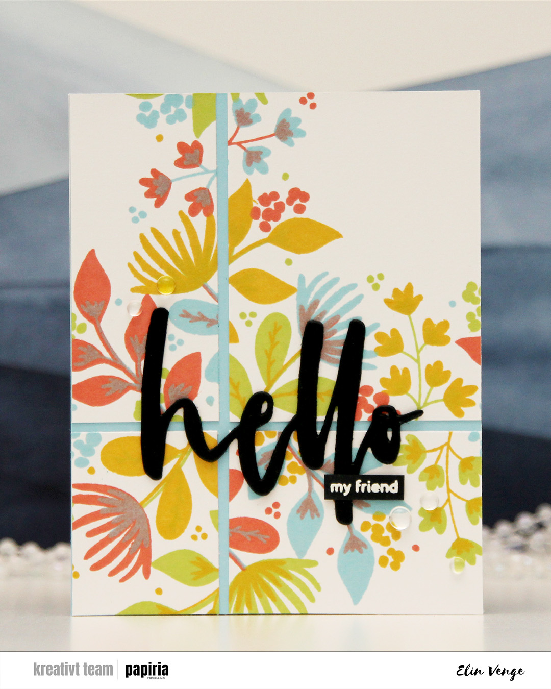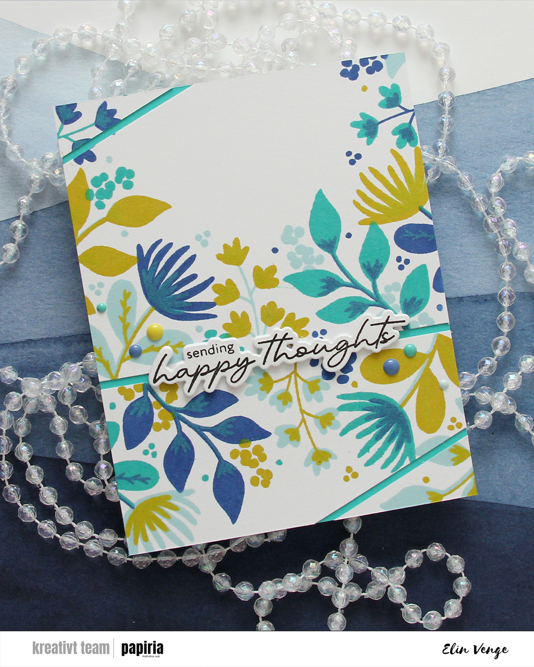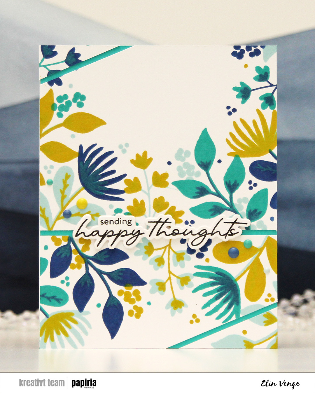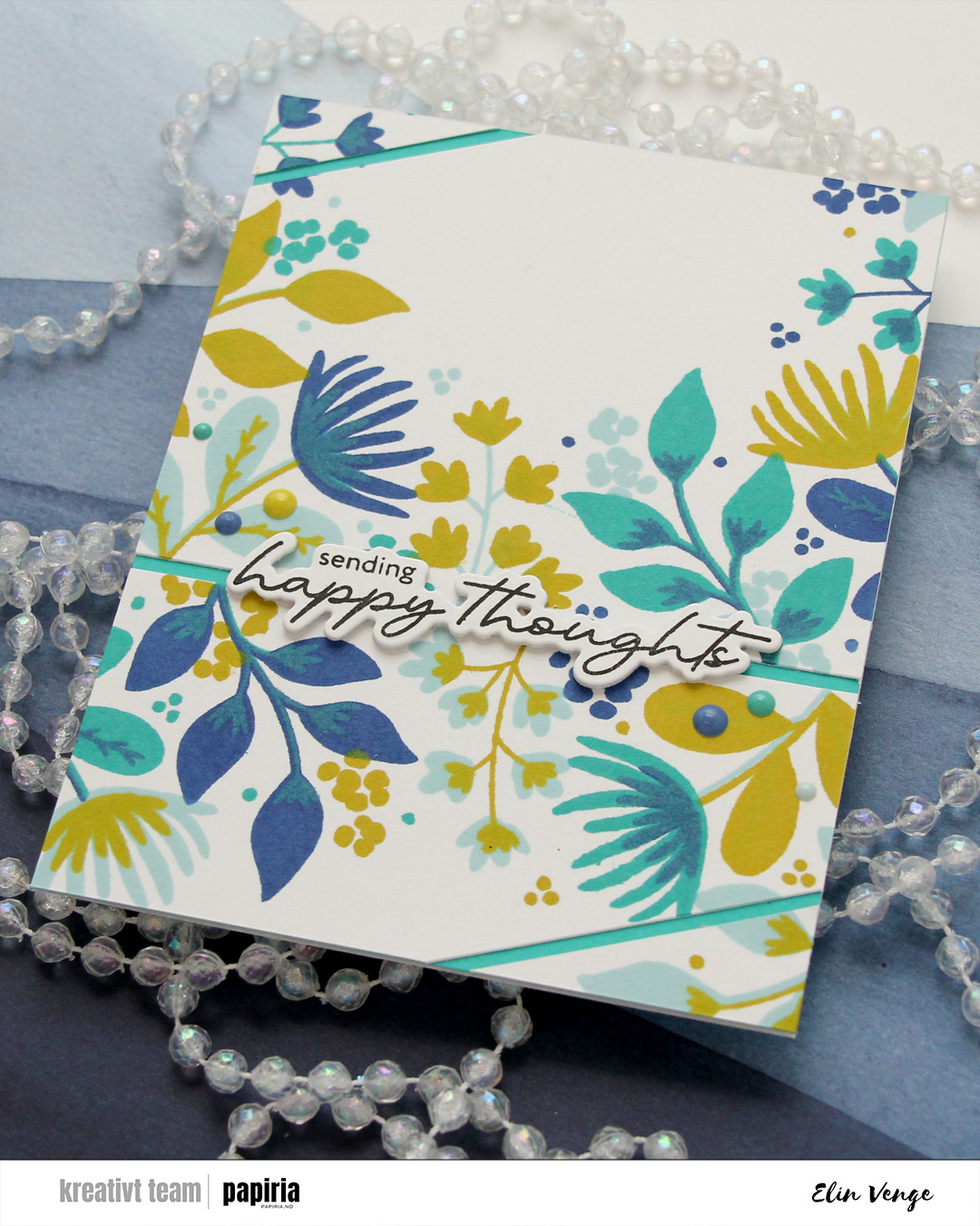 My second card features the same technique of cutting up the finished piece into smaller bits. Here, I used Sprout, Sunflower, Sorbet and Harbor inks, which makes for a way more colorful background (it’s basically a green, a yellow, a red and a blue).