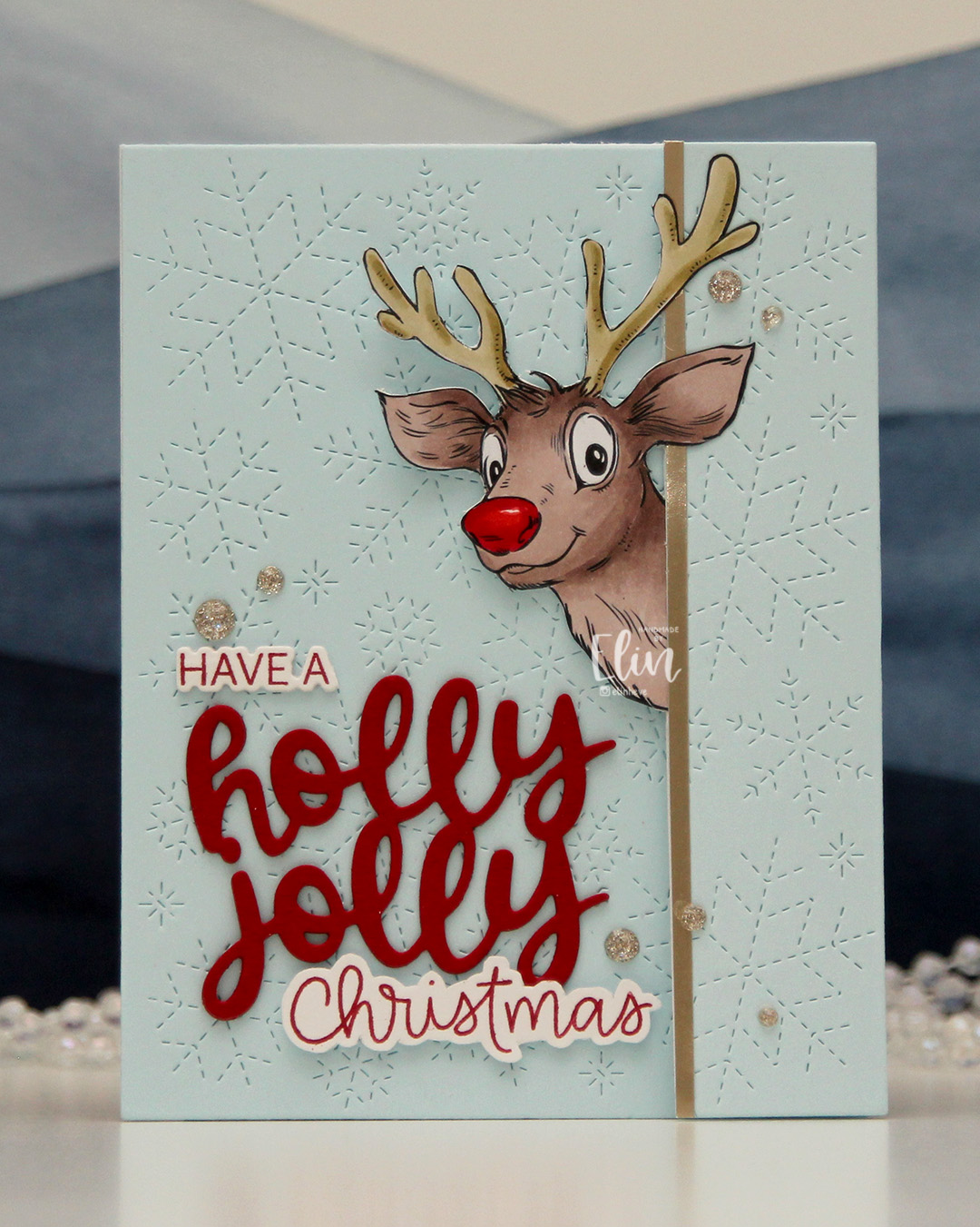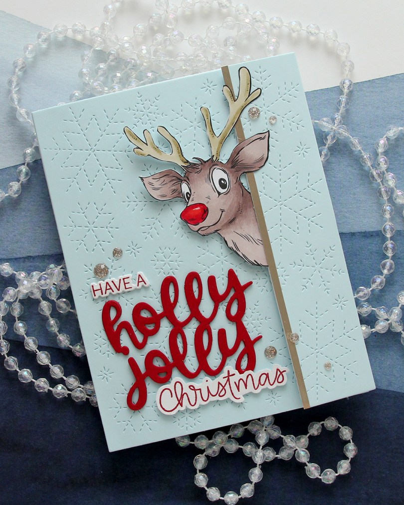 Hi, crafty friends! Is it too early to think about Christmas cards? I know there are lots of people who don’t like creating holiday cards this time of year, and I totally get it. I, myself, am an all year Christmas card maker. My problem for the past couple of years hasn’t been creating the cards, but getting them in the mail. I’ll try to be better this year, we could all use the extra joy that fun mail brings, right? If I want to send cards, I also need to create some, and this Peeking Reindeer from Mo Manning was so cute, I couldn’t resist. It was the November 2025 freebie over on her Patreon.