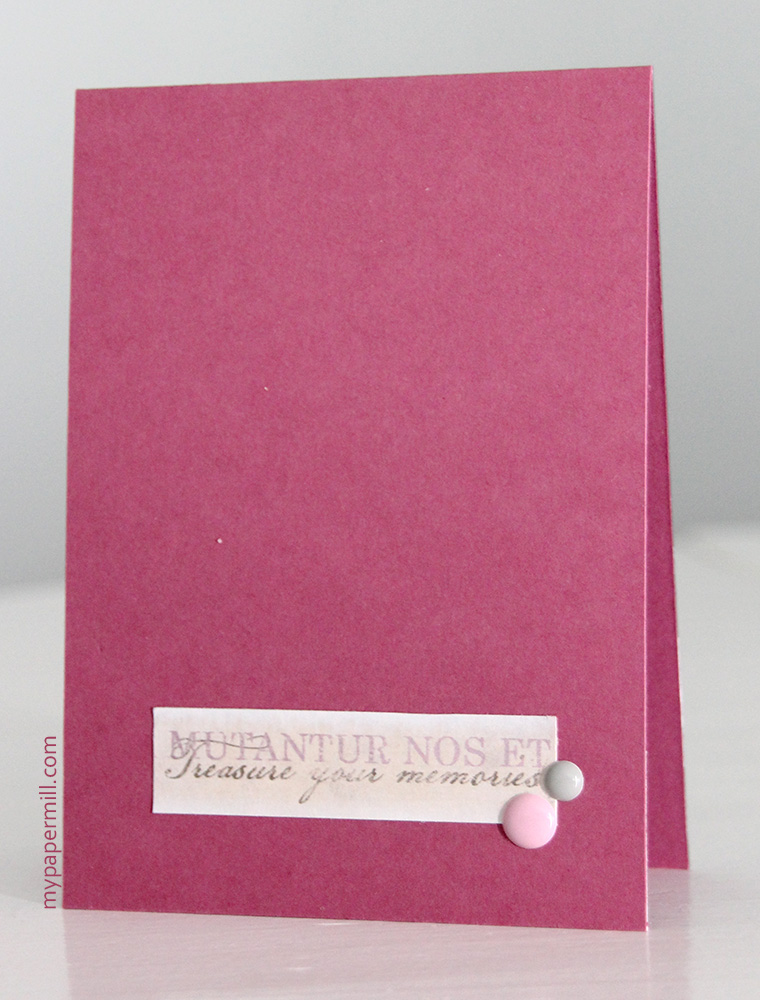 Simple back, with a couple of more dots and a tiny bit of the back of the strip that you usually cut off the patterned paper. Easy peasy lemon squeezy, as Laura Bassen would say.