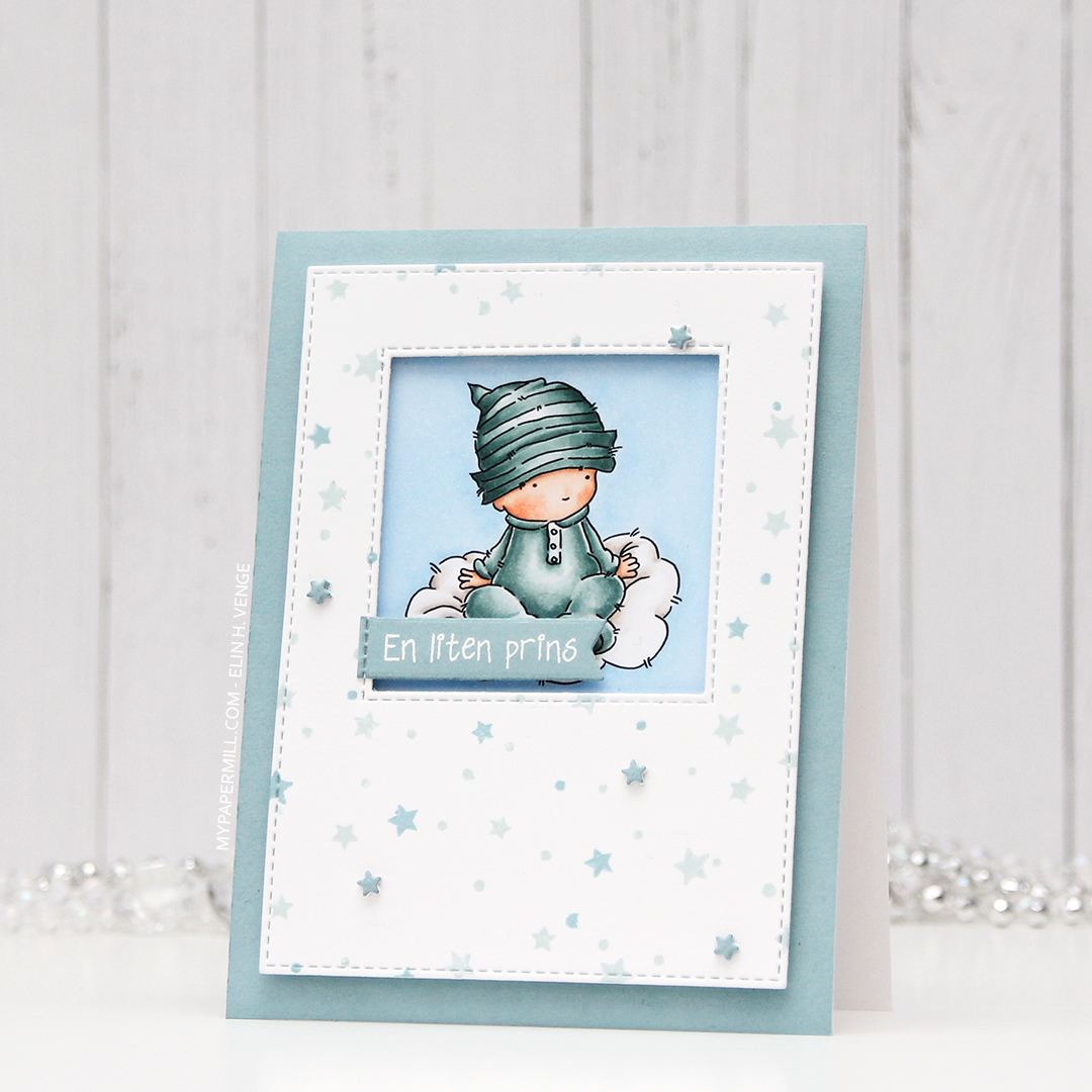 Hi, again! Two posts in one day doesn’t happen very often, but I have a baby card to share, featuring Baby Cloud from Lili of the Valley. Baby sitting on a cloud, what’s not to love?