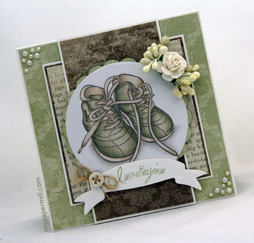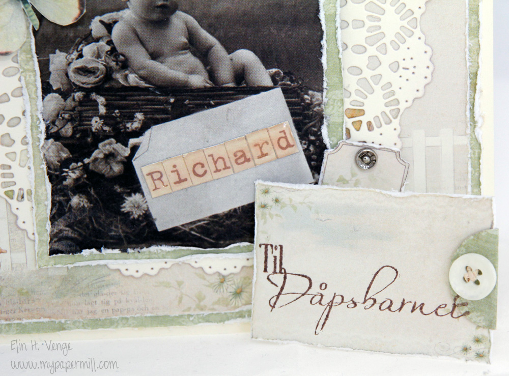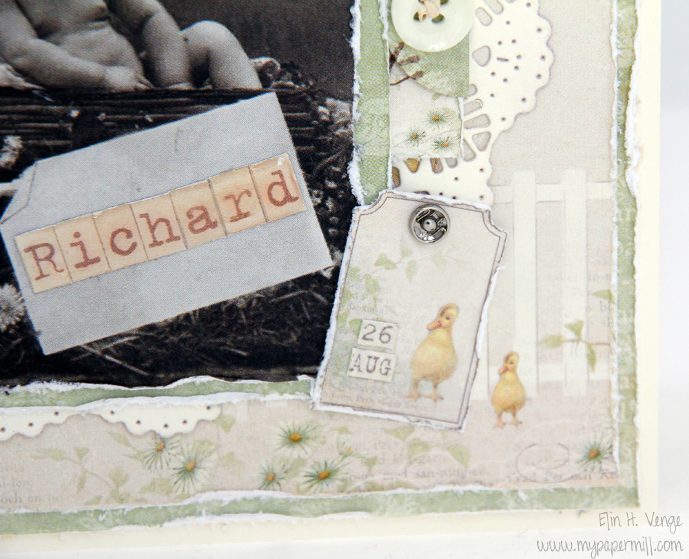 Behind the image I added a hidden tag. The sentiment stamp is from NSD, I stamped it with Memento Espresso Truffle ink and added the date with white Papirdesign stickers that I colored with a Copic marker.