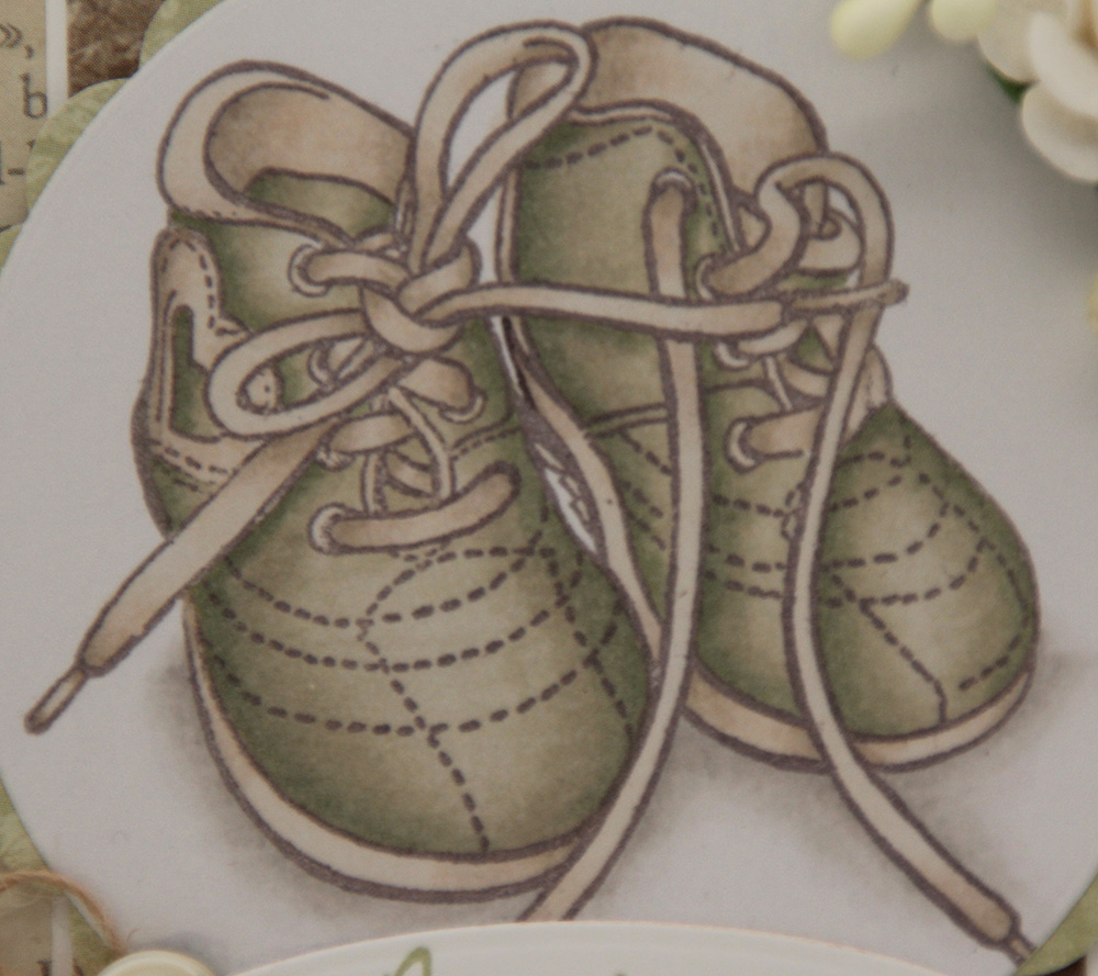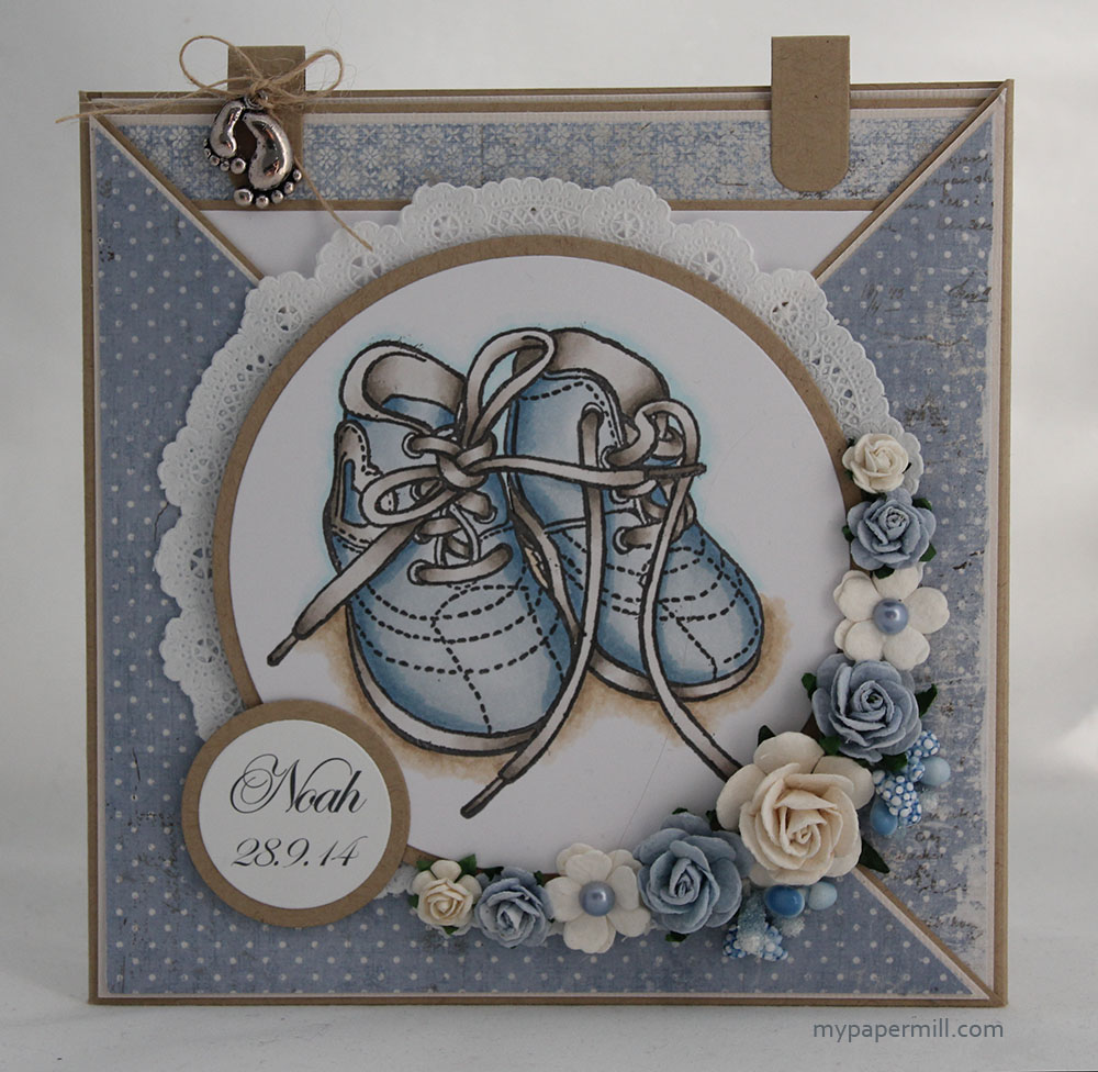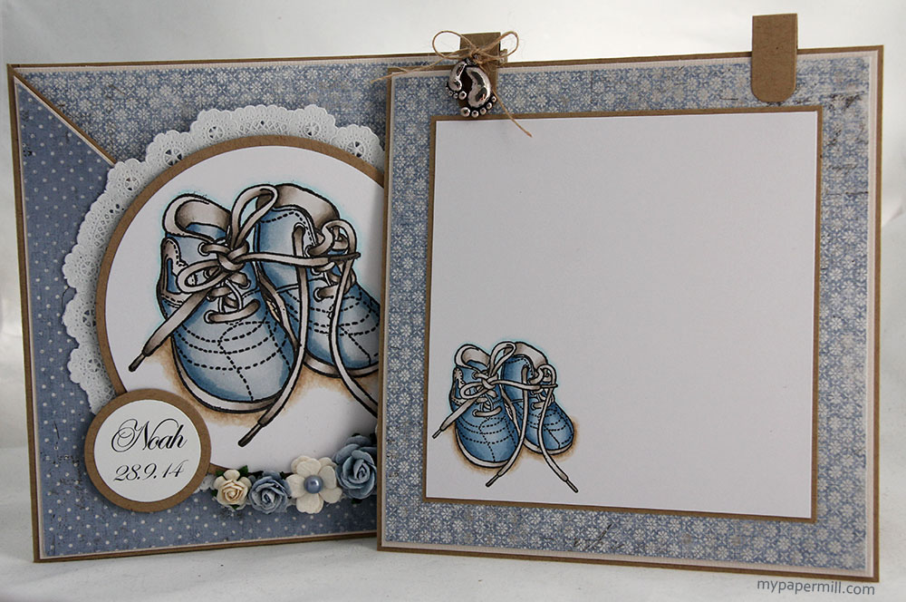 As usual my insides are similar to the front of my card. Another christening stamp from NSD. I added some shabby white fran-táge around the edge of the panel and hid a small pocket sprinkled with fran-táge behind it with room for money.