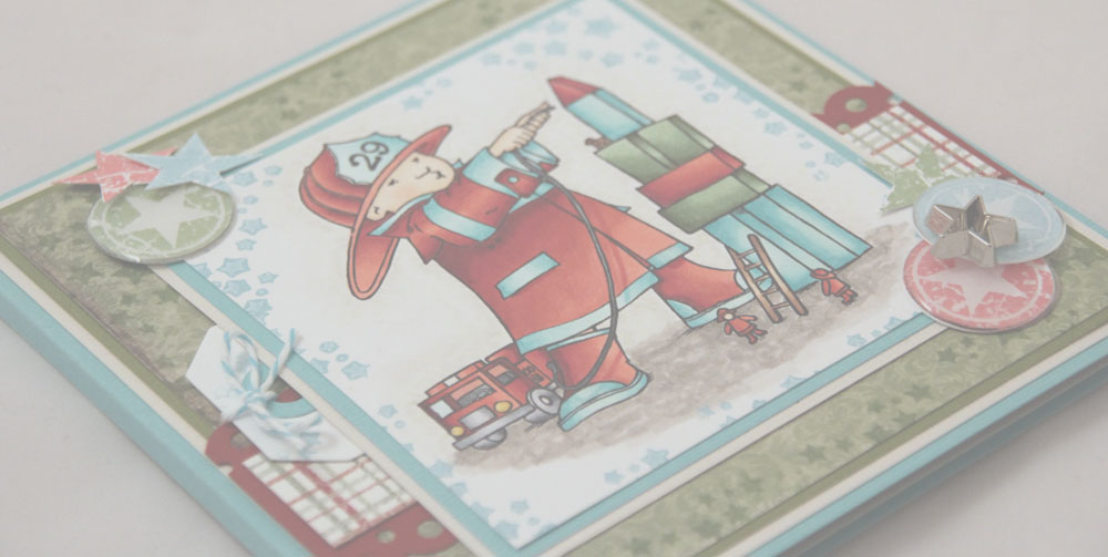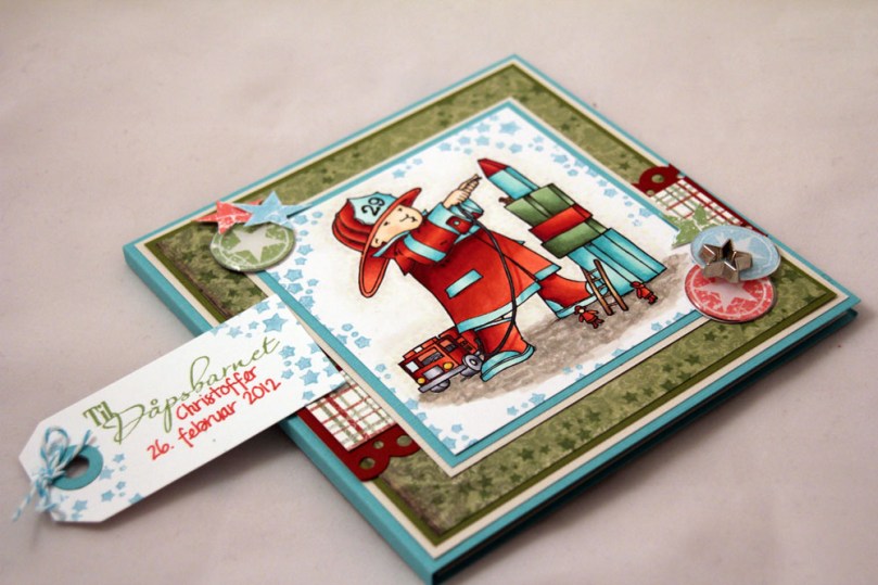 Like most of the other christening cards in this order it’s not your typical christening card, the recipient of the card is nearly four years old, so a firefighter with Maja Design patterned paper fits nicely.