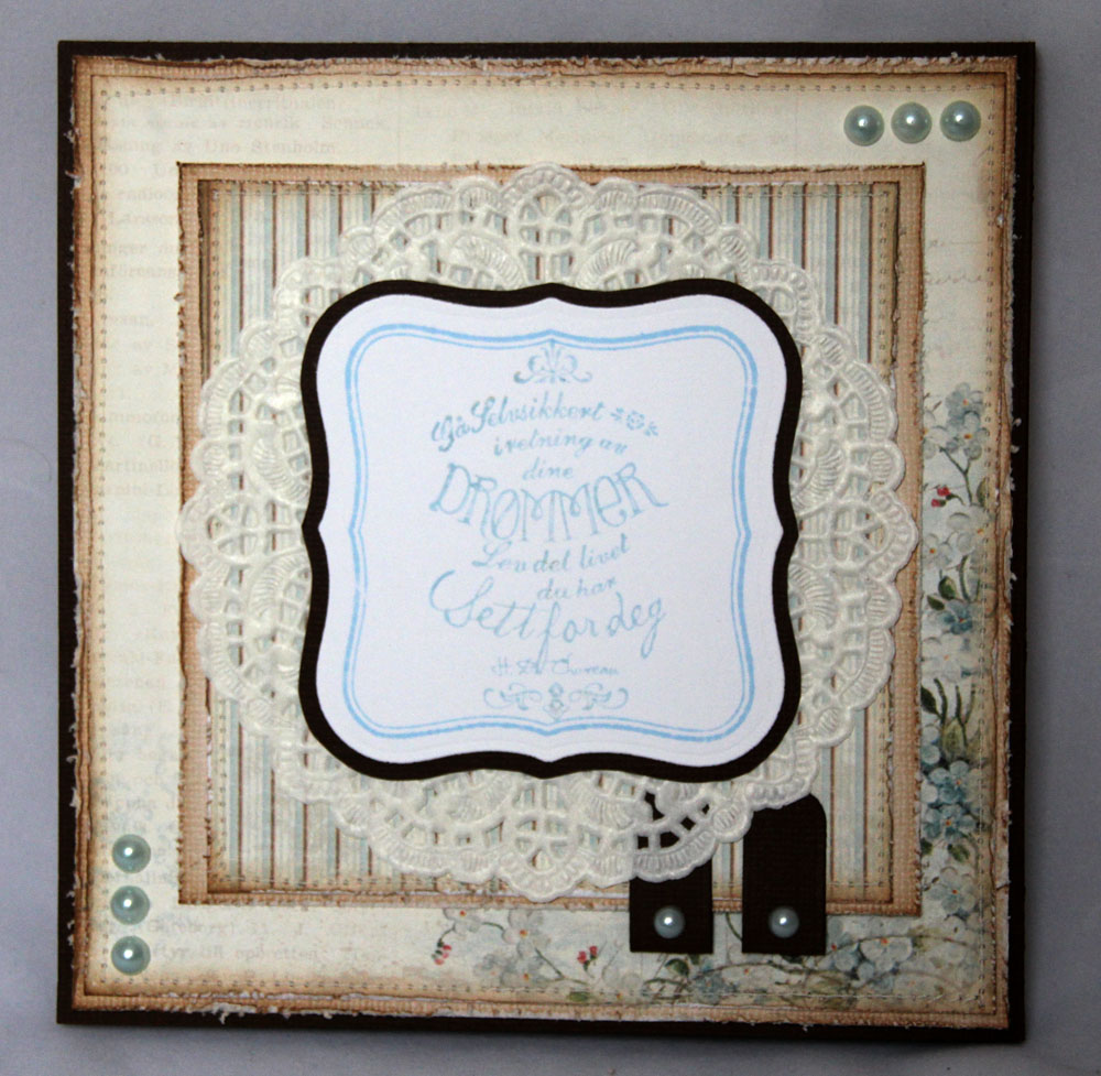 Simple back. The same “Dream..” stamp from Stempelglede that the rest of the siblings are getting on the back of their christening cards.