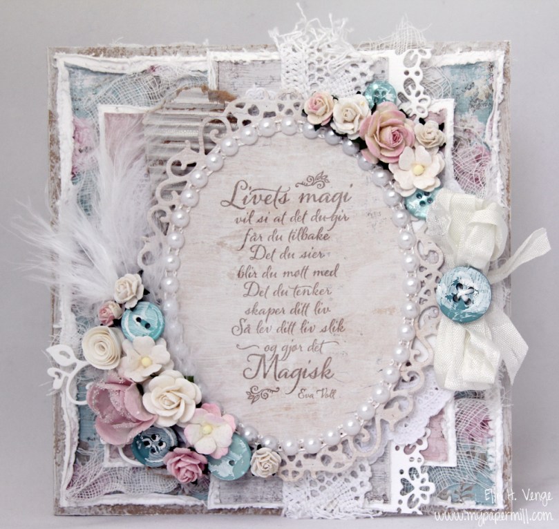20131110-114312.jpgNok et kort som ikke er veldig typisk meg. Dette kortet er veldig sterkt inspirert av Mona, som er en mester på kort i denne stilen. Selv om jeg ikke er helt komfortabel med malingen og grisingen som skal til ble jeg faktisk ganske fornøyd med dette kortet, selv om jeg føler at jeg er på veldig dypt vann når jeg skal bruke metervis med blonder på ett kort!