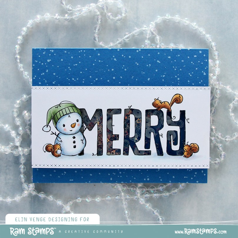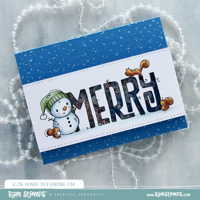 I chose four of the snowmen in the set and scaled them to fit inside the windows on this Globies Grid Cover die from Mama Elephant. I colored them with Copics and fussy cut them leaving a thin white border.