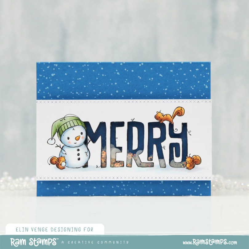 I’m done venting. I think. I was originally planning on adding a stacked die cut where all the snow is, but then I came up with the idea of a shaker card instead. It’s kind of like the little person under the beanie is trapped inside the shaker with all the shaker bits, which I thought was a fun concept.