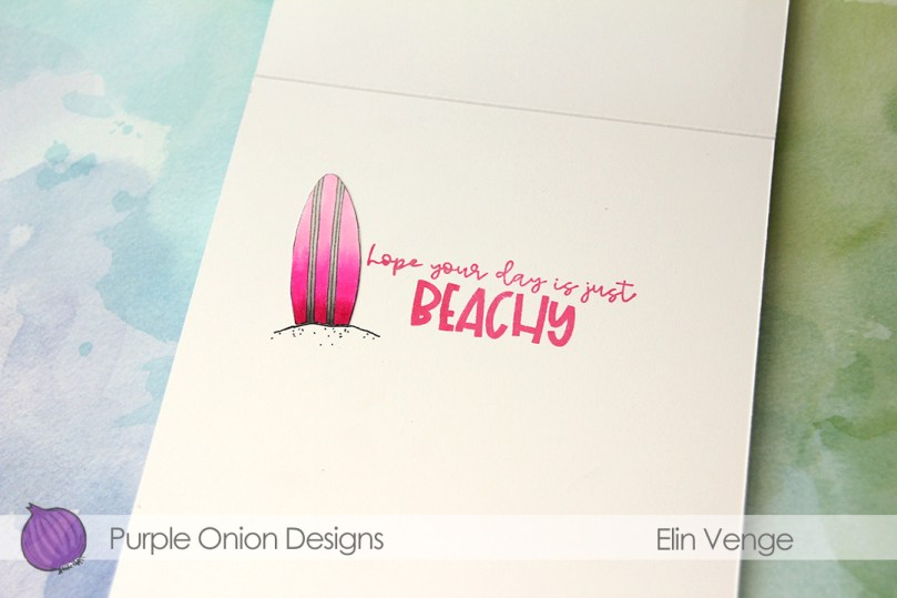 I couldn’t fit all my surfboards on the front of the card, so I glued the last one to the inside next to a sentiment from the
