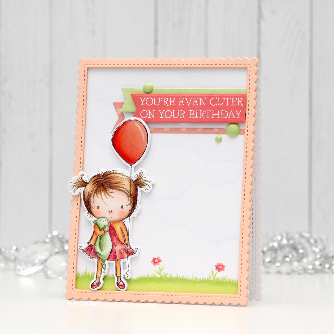 Hi, everyone! I’m one of the lucky ones to get to play with one of the new Rachelle Anne Miller stamps coming in the February release from My Favorite Things. Tomorrow (10 AM EST), this cute girl and the coordinating die are available for purchase over at the MFT store, so I thought I’d share my card today.