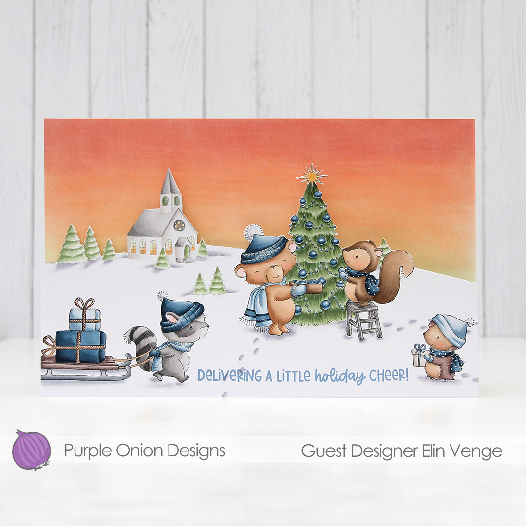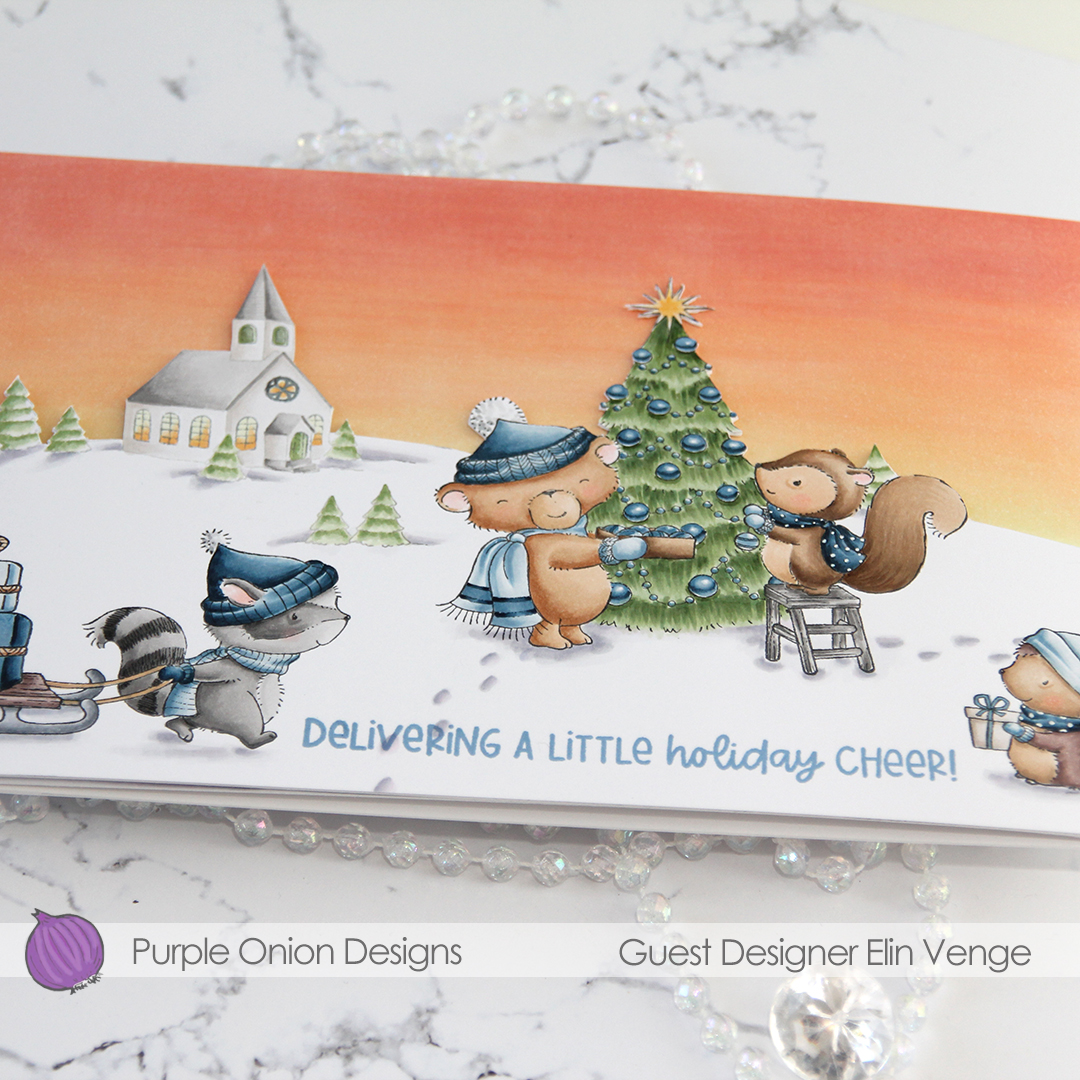 I colored my scene with Copics on X-Press It cardstock and fussy cut right up against the black lines. This image has very simple outlines, making fussy cutting a cinch.