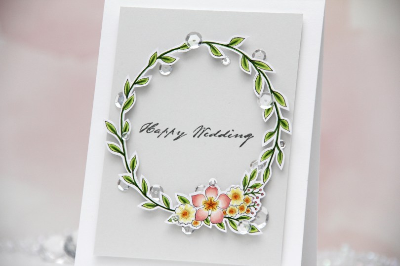 I added the heart using foam squares that are half the height of nomal ones, and then I added the bride and groom using regular foam squares. I also added a few Nuvo drops to the lid of my box.