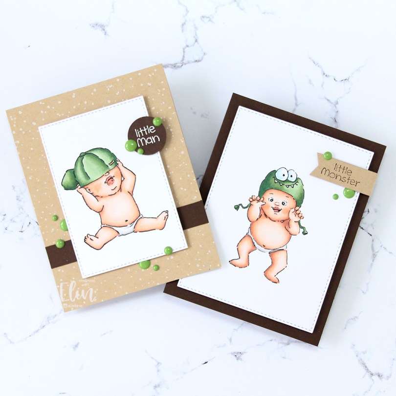 I colored the image with Copics and die cut it using the second largest die in the A2 Stitched Rectangles STAX 2 set from My Favorite Things, before adding it to a card base made from Gumdrop Green Heavyweight card stock, also from MFT, using lots and lots of foam tape. I used a black Glaze pen to add some dimension and shine to their eyes and noses.