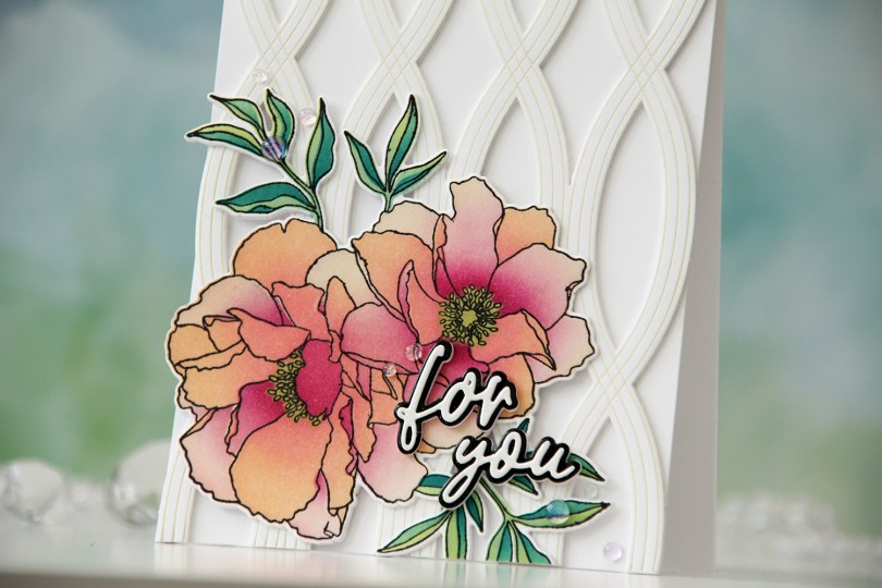 The Blended petals set from Concord & 9th is a very versatile one with a large flower image that you can color up any way you’d like. There are even coordinating stencils that let you add color very easily, which is what I used for my card. As much as I love coloring, stencils make everything go so much faster!