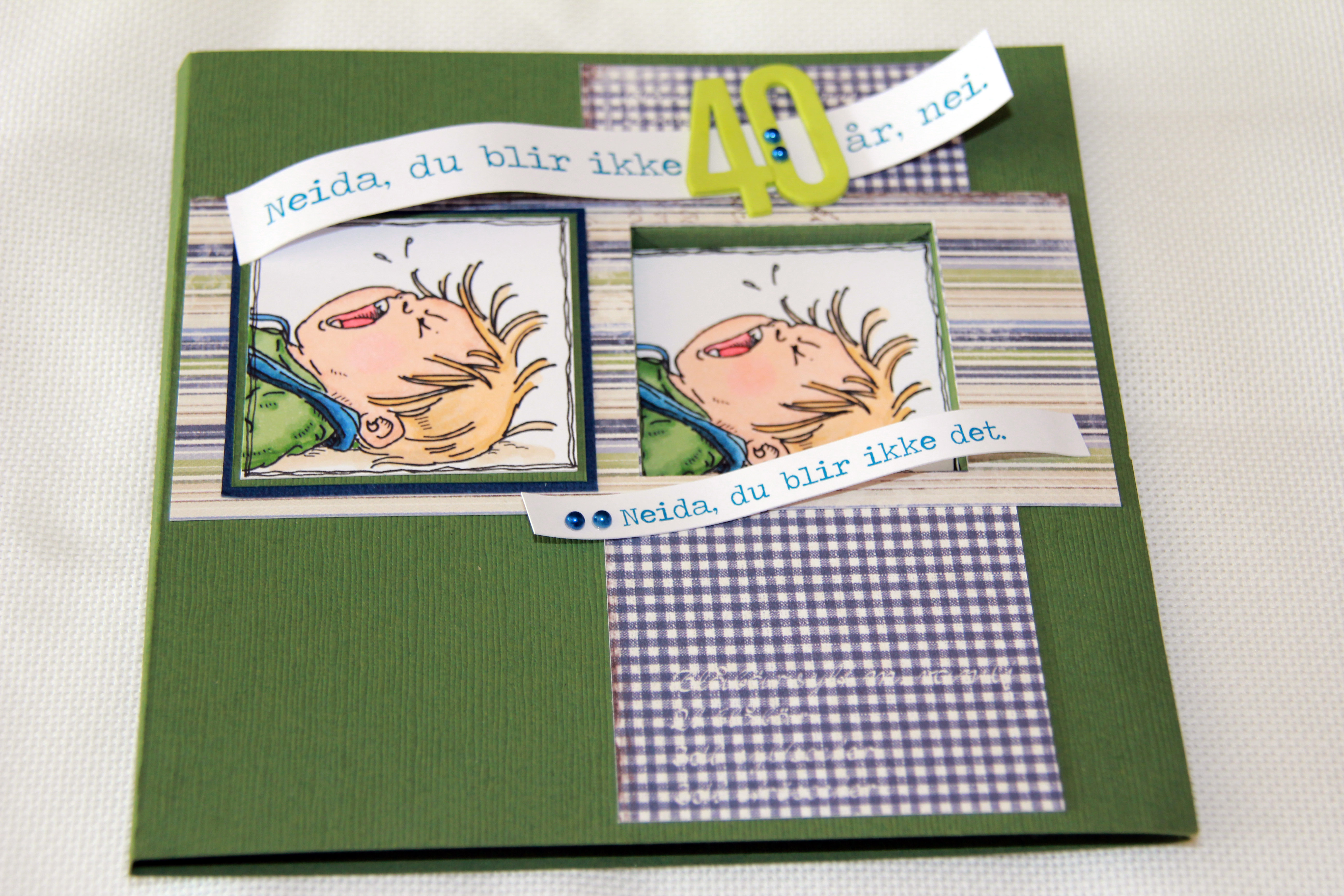 OK, so I’m not really planning on giving my brother a car for his 30th. He already has three cars, what does he need another one for (no matter how badly he wants a Tesla)?!? His birthday card, however, had a little car on it. The assignment last week for KOM (card-o-mania) at scrapping.no was to make a card that wasn’t square or rectangular in any way. I found the largest label 4 die from Spellbinders that I have and got started.