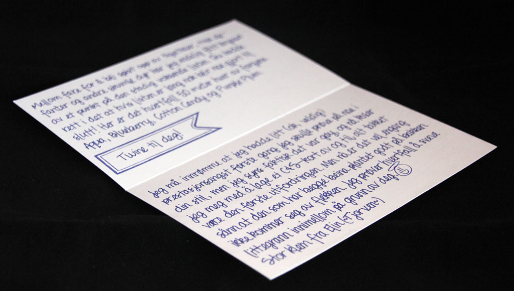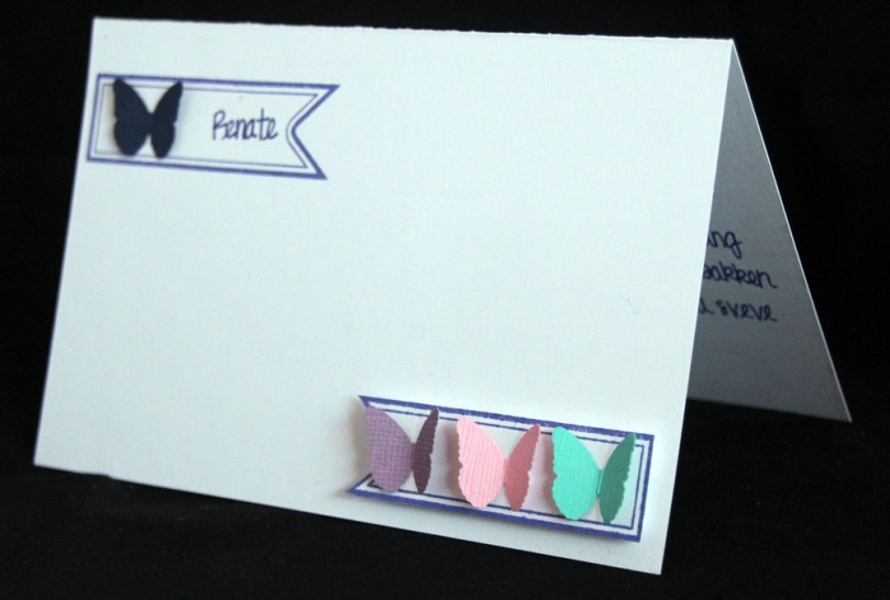 Enkle innsider med den lille av de to doily’ene jeg hadde på fronten (dette er French Pastry, den store er English Tea Party) og runde skrivefelt i kraft. Jeg har ikke funnet ut hva jeg skal skrive ennå, derfor er de foreløpig tomme. Her syns embossingen på mønsterarket mye bedre også.