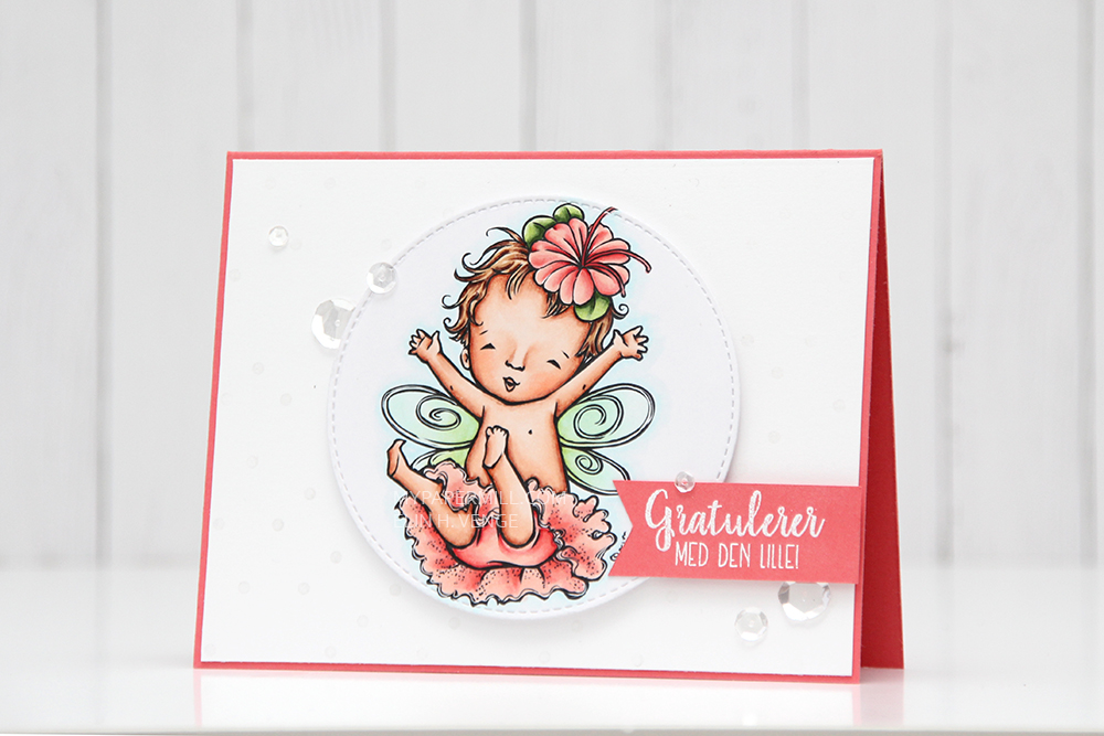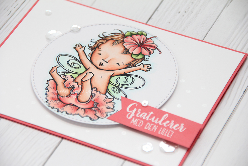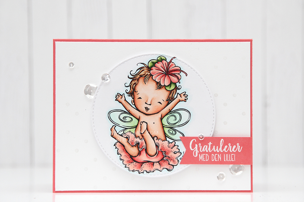 I die cut the Say Hello die an additional 8 times from white card stock, stacking all but 2 of them to form the shaker area. I removed the internal part of the stacked die cuts, creating a nice frame for my sequins to shake around in. I glued one of the remaining two die cuts onto the card base to fill in the word between the colorful negative die cuts. After filling the shaker area with white orchid sequins from Little Things from Lucy’s Cards, I put acetate on top to close the shaker area and the last white die cut on top, inlaid and flush with the colorful background mounted on foam tape for dimension.