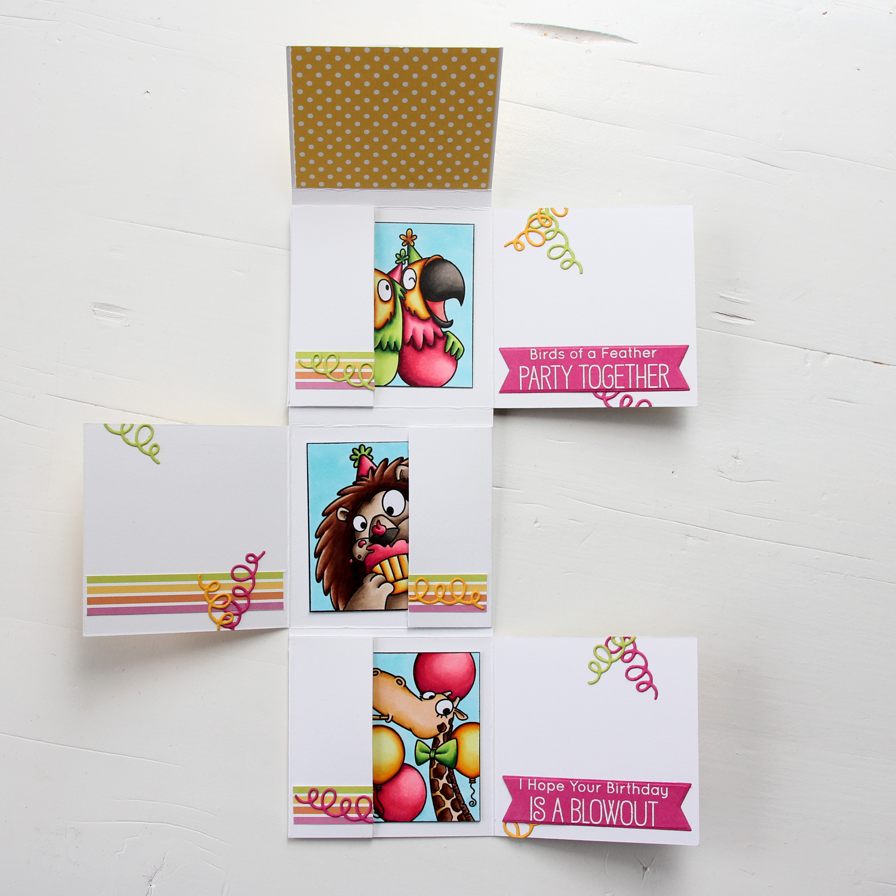 I did it. Very under the pump towards the end there, but I finished my entry into the Coloring Virtuoso category for the MFT Superstar contest. And I’m so happy with how it turned out. Looks like an ordinary landscape A2 card, but when you open it up, there’s more fun on the inside.