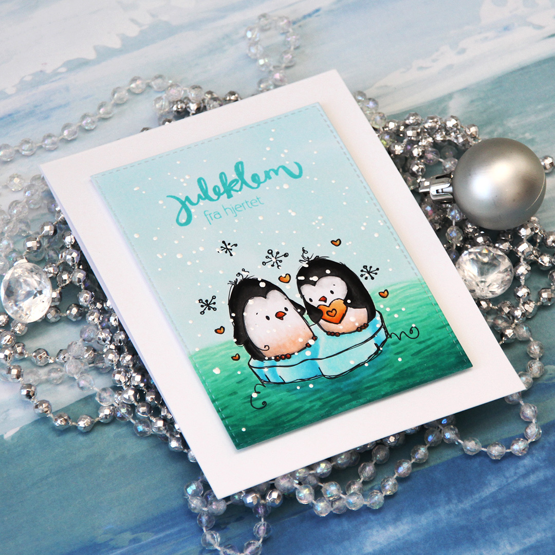 I stamped a couple of penguins running into the scene to assist the little mouse decorating the tree. The sky that you see at the top is actually the inside.