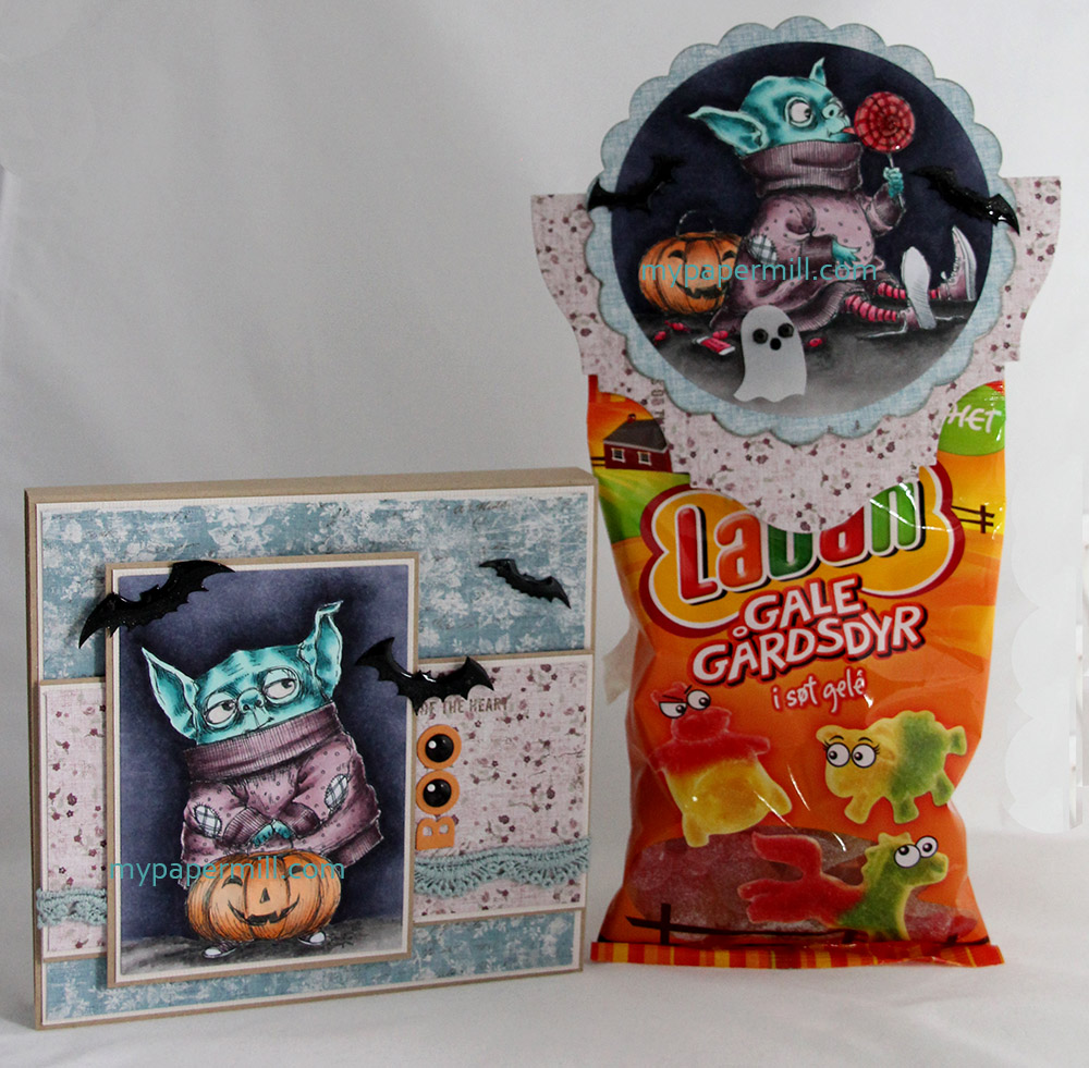 CMN 71 samletJeg lagde også en topper til en pose med Laban Gale gårdsdyr som jeg satte på. Der brukte jeg Hobson with Treats som jeg fargela på samme måte som den andre. Et spøkelse til og flere flaggermus fikk være pynt. Jeg la Wink of Stella på gresskarene og på kjærligheten. Kjærligheten fikk også et lag med glossy accents, så den skinner ordentlig!