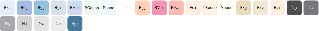 Not a whole lot of colors for this one. I have, however, used quite a few colors to color in the snow. B41 was used for the sky, but the rest of those light blues, the BV20 and the BG0000 were all used for the snow, as well as the blender. For the sky I also used B40, which is a color I’ve made myself.