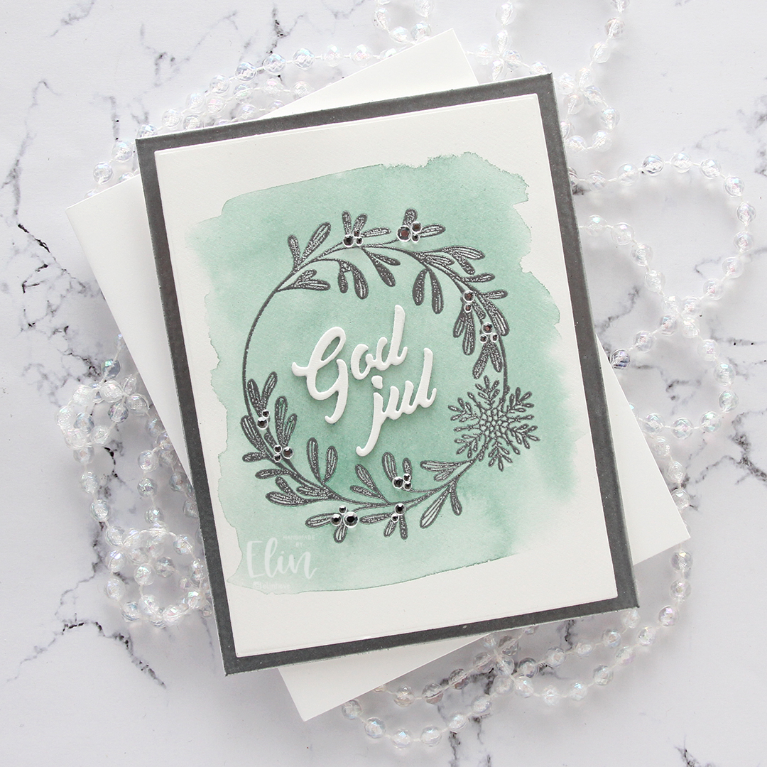 To finish off the card I added Kort & Godt diamonds in three different sizes in clusters around the wreath. They act as little berries and add a little bit of sparkle and shine.