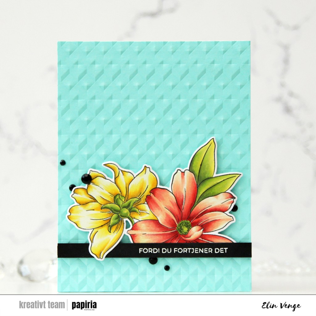 I used a few black gems from Papirdesign to pick up the black from the sentiment strip.