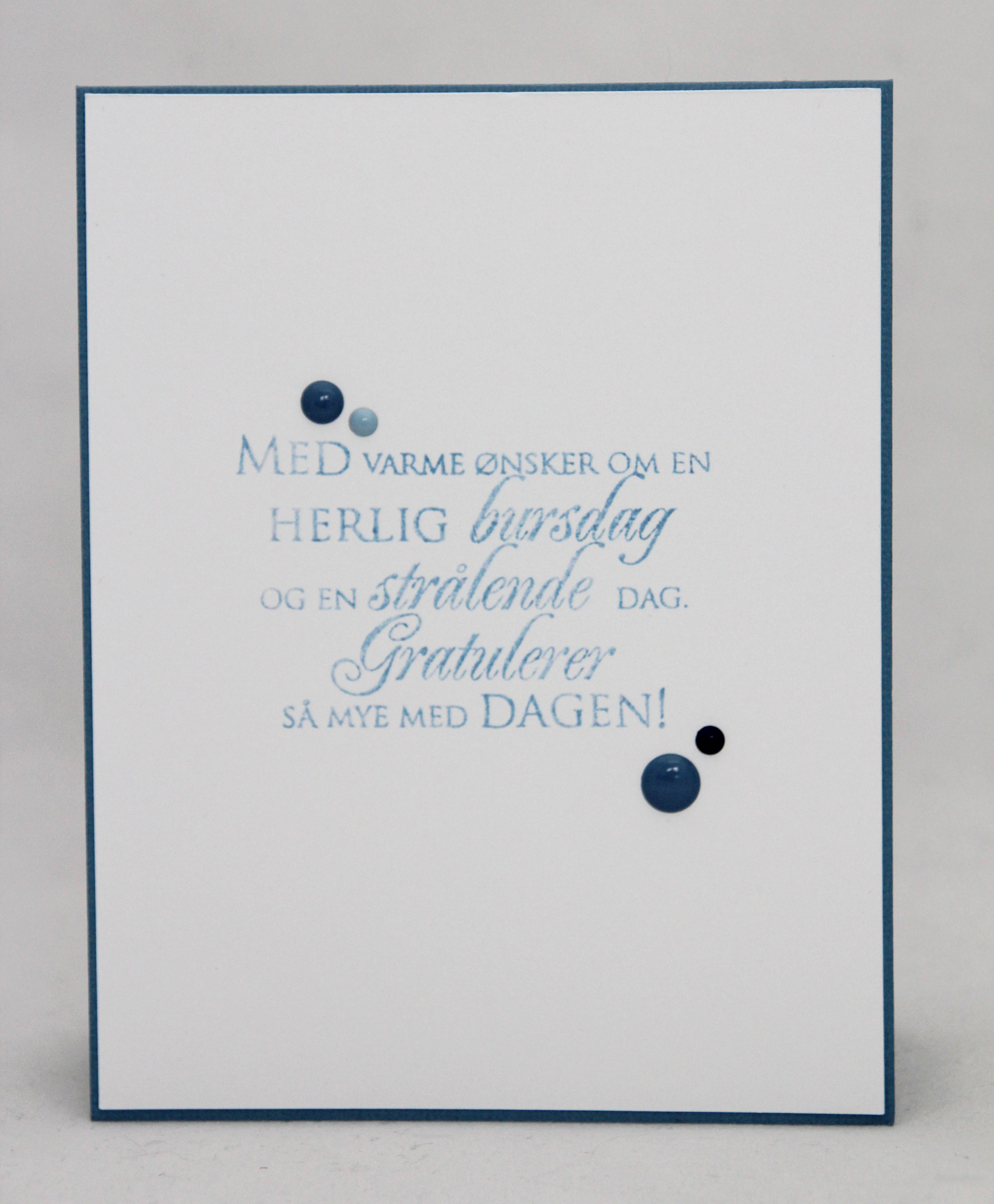 Baksiden har jeg laget relativt enkel, men med elementer som bordene fra forsiden. Stempelet her kommer også fra Norsk Stempelblad AS. Ordet DU har jeg stemplet på en mørk bit mønsterark, klippet ut og limt på tagen.