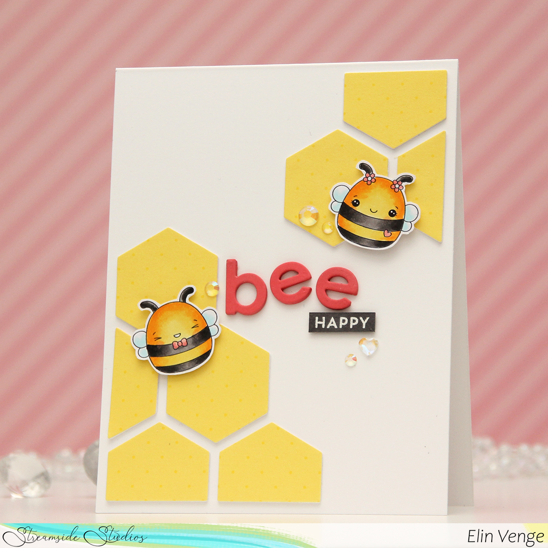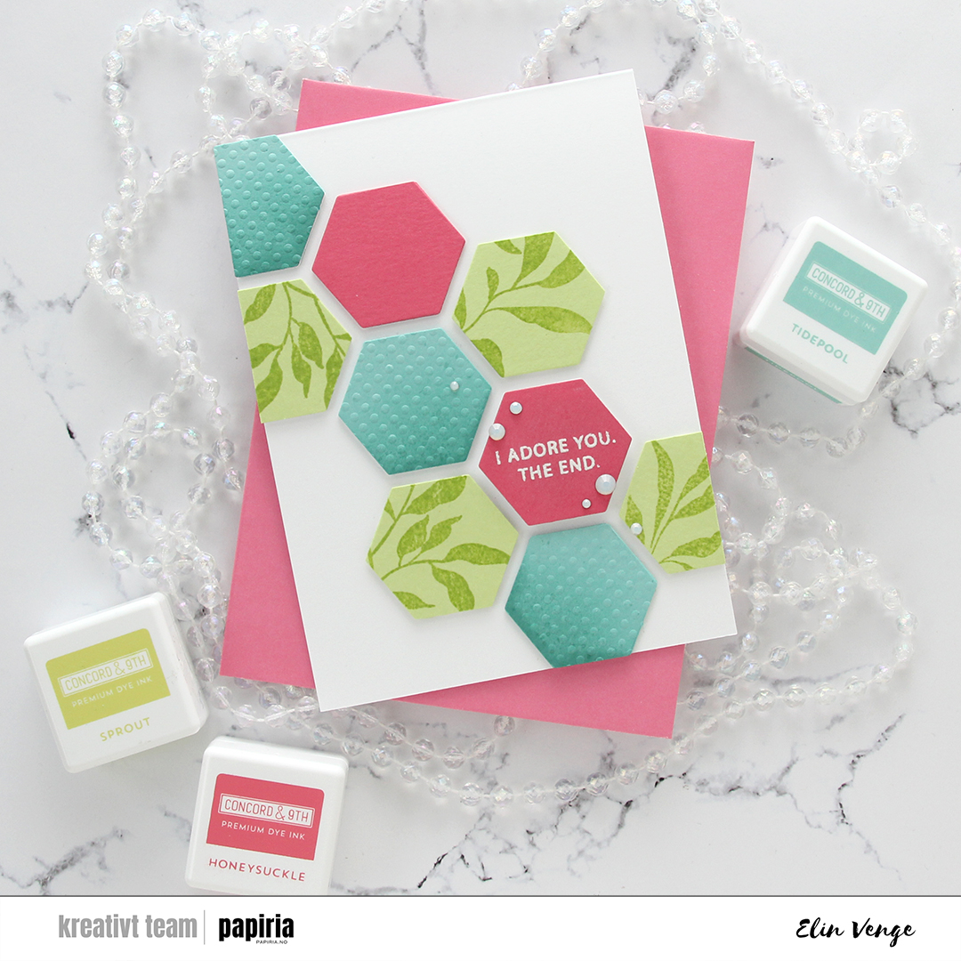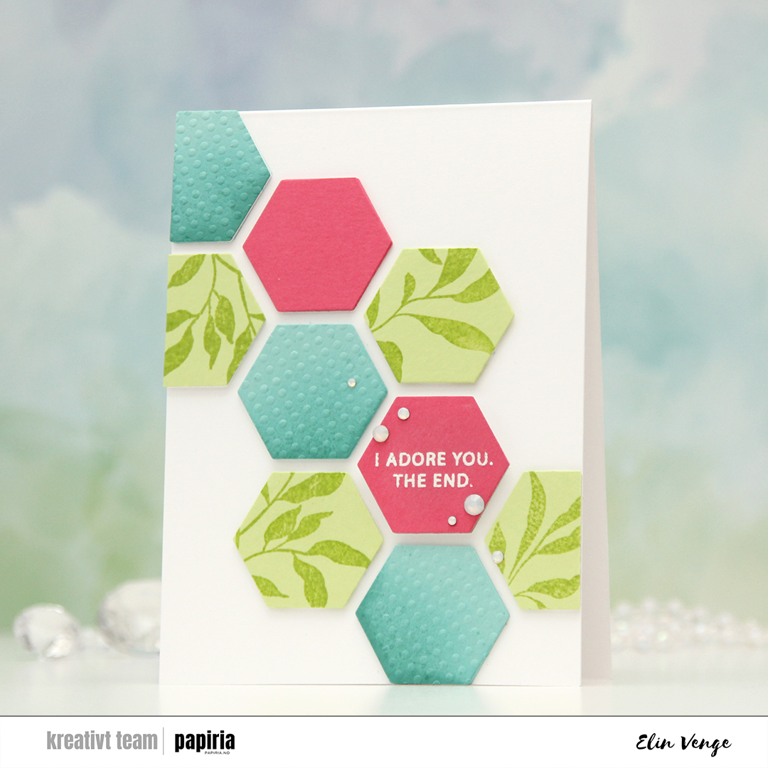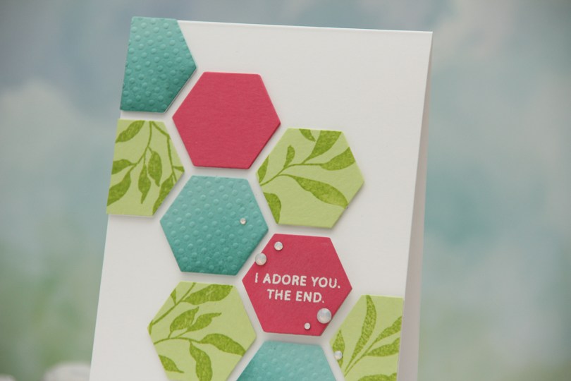 The dimension makes it look like these hexagons are floating on the front of the card, and the pink one with the sentiment is floating a bit more than the rest.