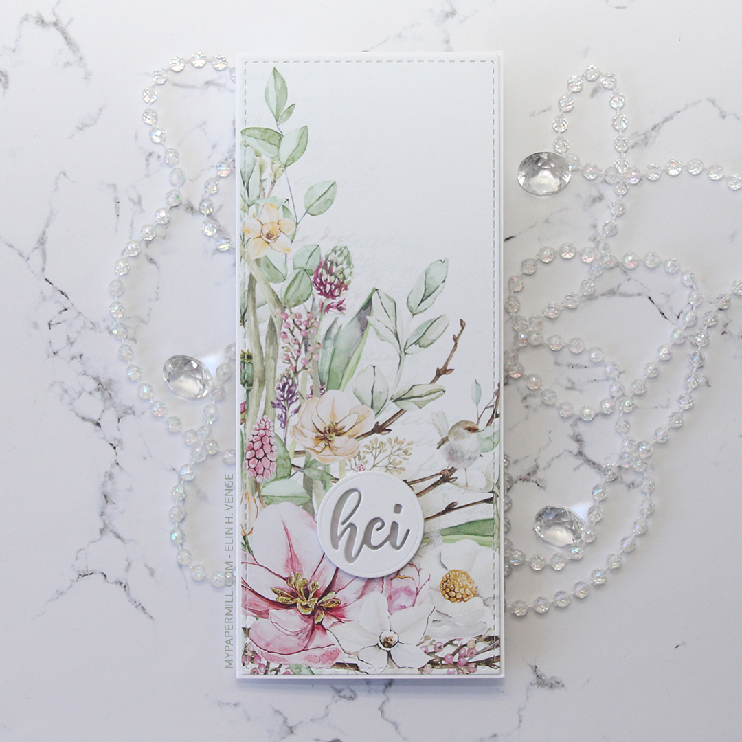 I stamped the sentiment using two ink colors from My Favorite Things: Jalapeño Popper and Sour Apple. I would have preferred a green tone with more blue in it, but I don’t have that in the ink formulation that’s best for this kind of mostly solid stamping. I find that the squishy ink pads that have become popular in recent years do better with this kind of stamping than the old firm felt pad type ink pads.