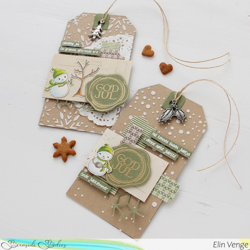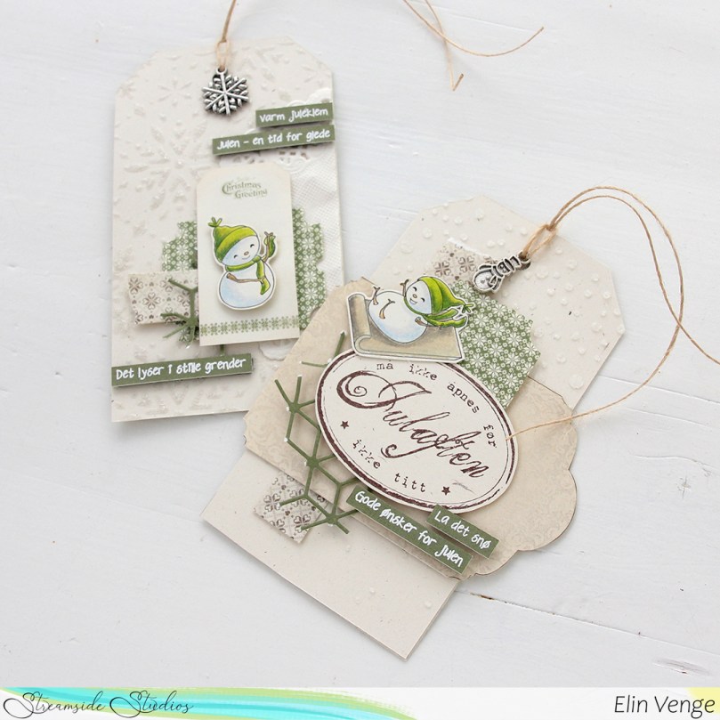 Hi, crafty friends! Brace yourselves for a text heavy post. Every year, I seem to make more than enough Christmas cards to send out, but I always scramble last minute to get gift tags done. Not this year, I’ve made quite a few, and here are a couple more, featuring snowmen from the Snow Much Fun digi stamp set from Streamside Studios.