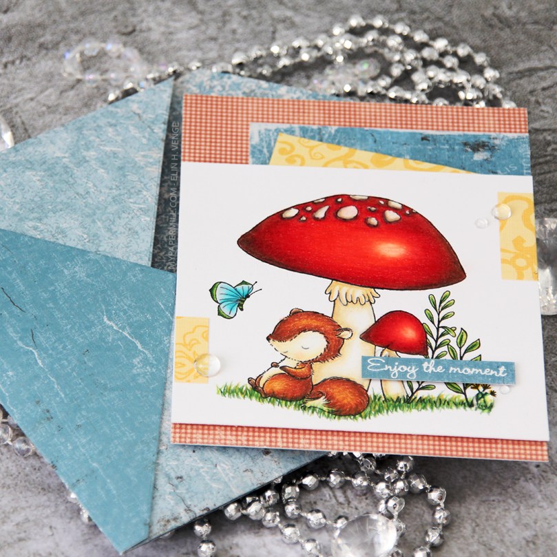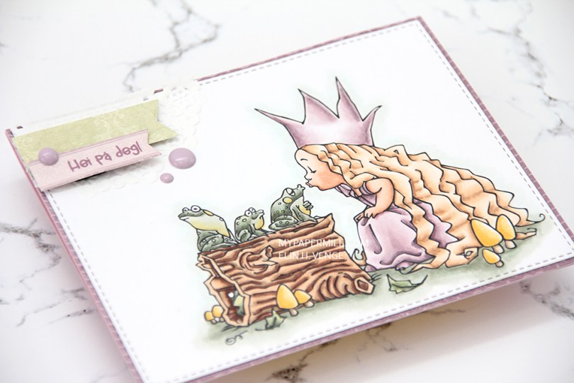 I love how the patterned papers from both Papirdesign and Pion Design match both the soft coloring I did on the image and those purple Papirdesign enamel dots.
