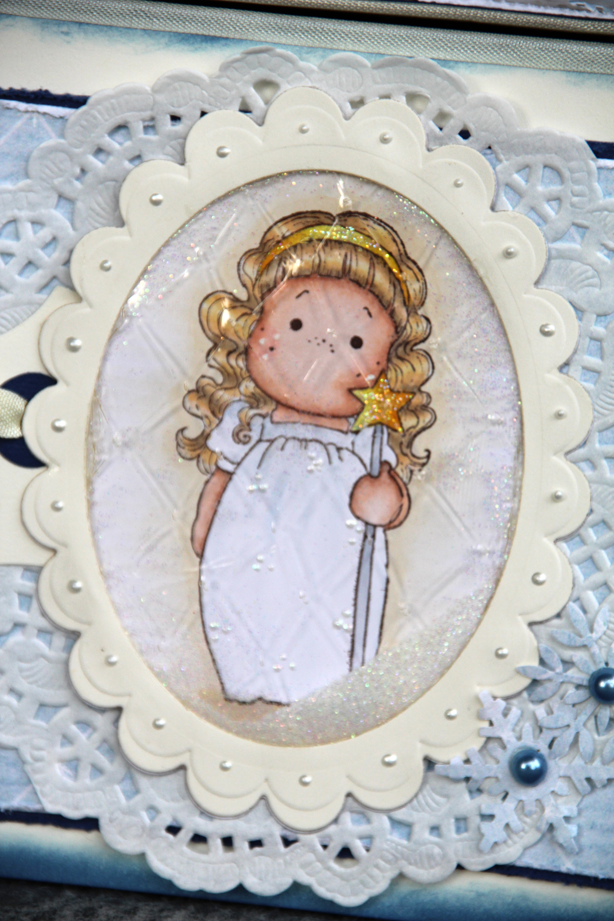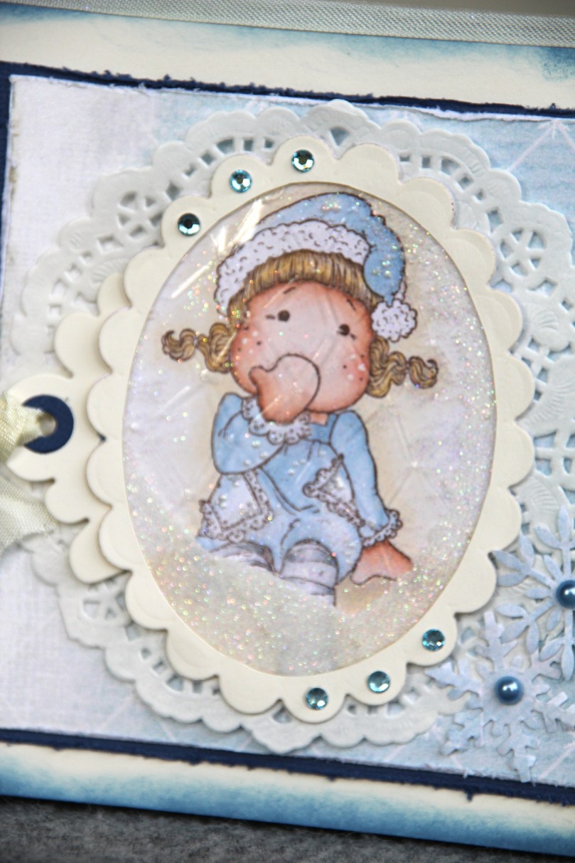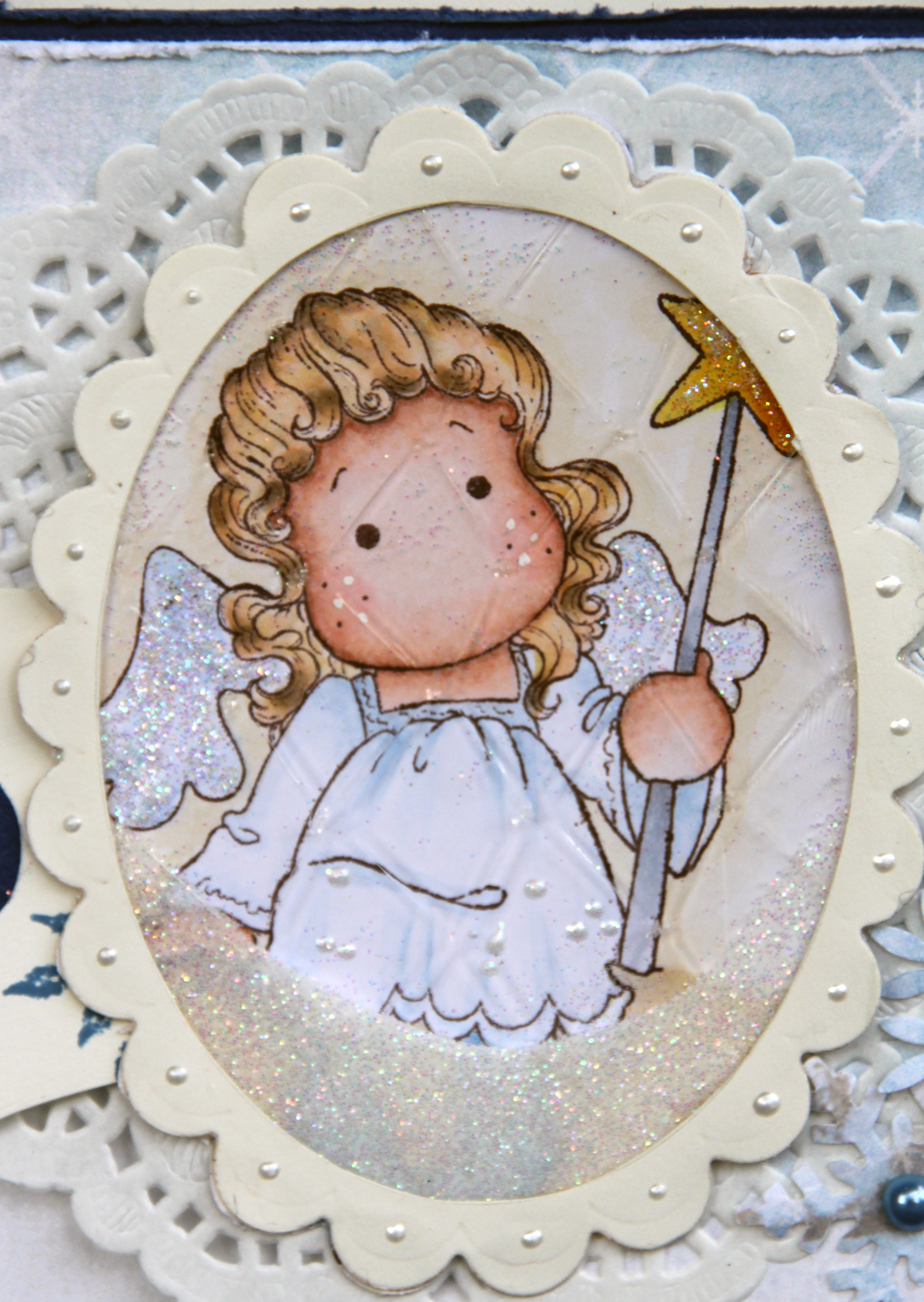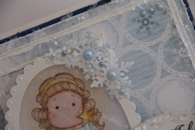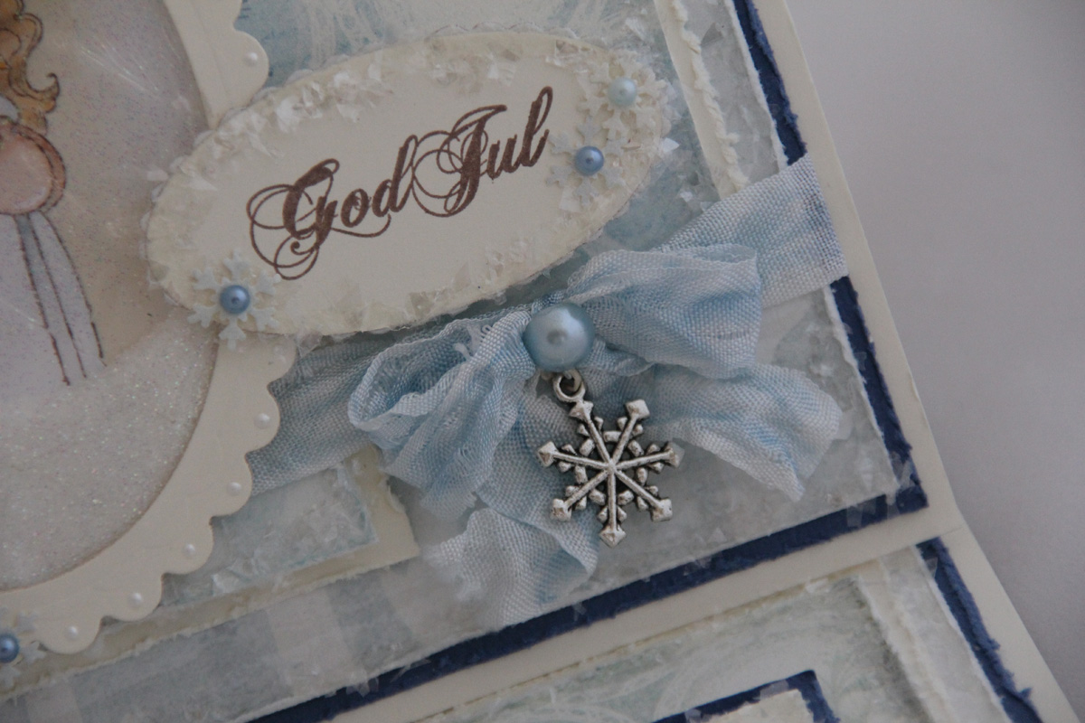 Perlene på borden med snøkrystallene nederst på kortet er “Bliss” fra Kaisercraft. Nydelig farge som passer perfekt til mønsterarkene.