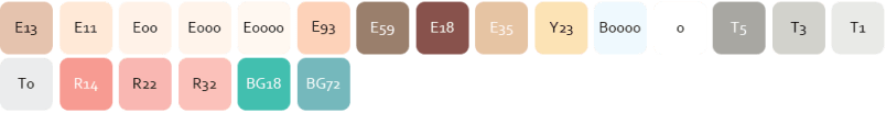 Jeg avslutter med fargene jeg har brukt på motivet. Jeg har også brukt B20 og BG71, som jeg har laget selv.