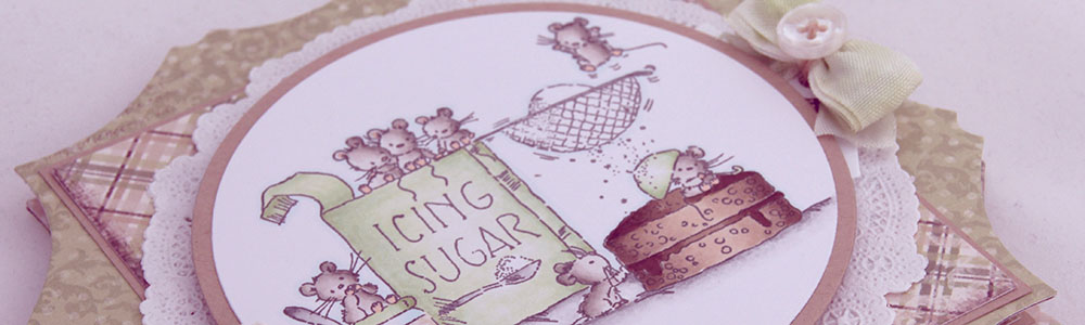 Lisbet frontKortet har jeg laget med en GoKreate-die (Half XXL Square Frames Frilly #6-settet) og arkene Marzipanbakelse og Ingefärspäron fra Ska vi ta en Fika?-kolleksjonen til Maja Design. Jeg har lånt motivet “Sprinkled With Sugar” (Lili of the Valley) fra Henrikke da hun var på besøk i begynnelsen av september. Blomstene kommer alle fra Wild Orchid Crafts, de grønne perlene er fra Kaisercraft og kakeservietten er fra Royal Lace.