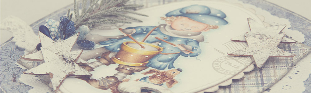 Nissepar front skråttDet er knappe to måneder igjen til jul, og hvis du ikke allerede har begynt på julekortene begynner du vel å få dårlig tid? Det kommer vel kanskje ikke som noe sjokk at kortet jeg viser frem i dag hovedsaklig går i blått og hvitt og har papirer fra Maja Design?