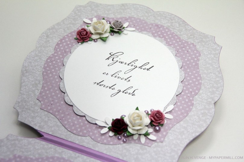 GD2015_ElinHVenge_0215_01aKortet er laget på en hvit papirpose med arkene Enjoying the lovely fragrance, a Romantic picnic in the Park og Princess Margareta’s Garden fra Sofiero-kolleksjonen til Maja Design, i tillegg til Vanilla fra Bazzill.