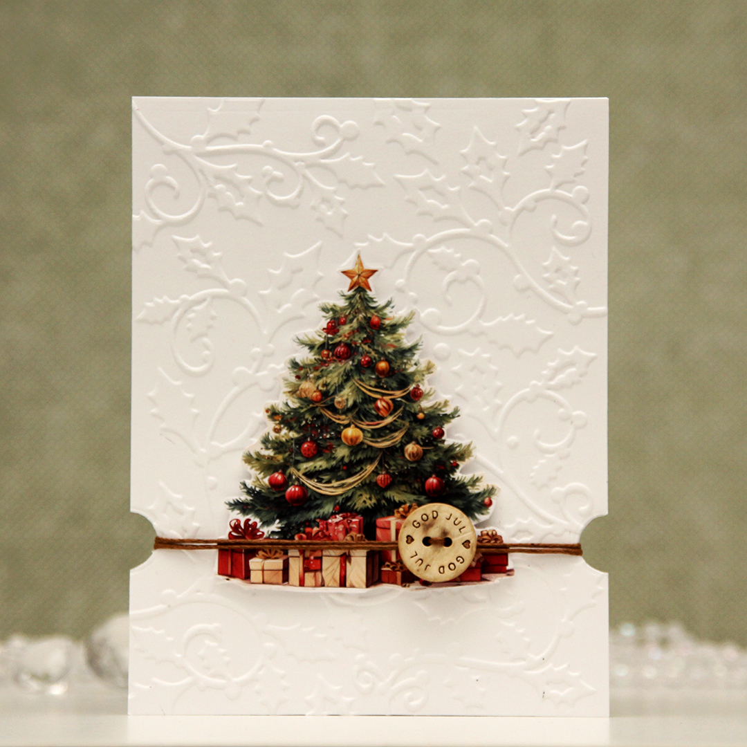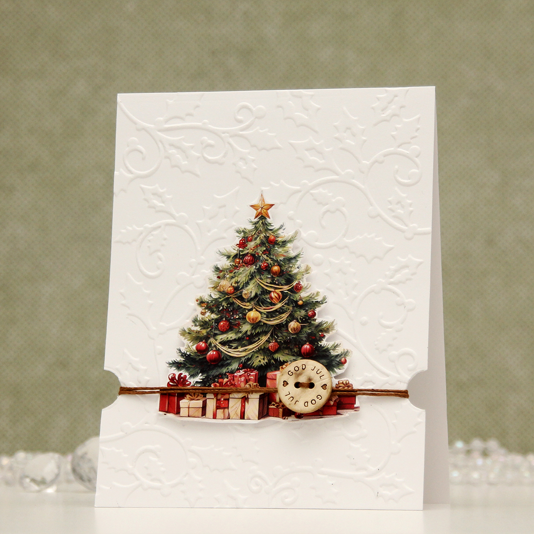 The card was made on order for a golf-playing tinsmith whose favorite football team (European football) is Liverpool. I wanted to include as many of the elements as possible, and made a slimline card with patterned paper from Papirdesign, P13 and 7 Dots Studio.
