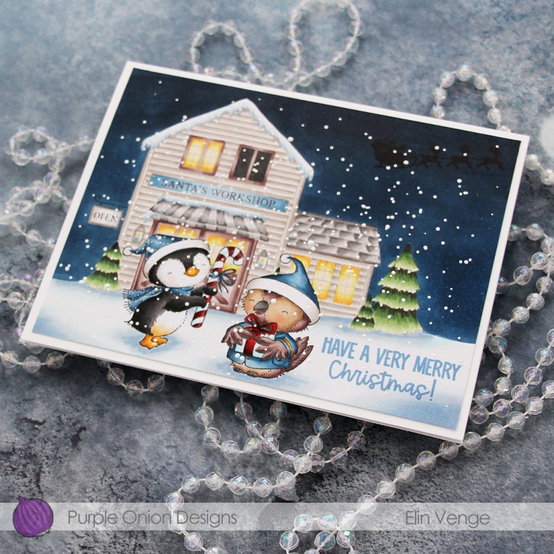 Hi, crafty friends. It’s been a while since my last post. Things have been crazy busy this past month, and I’ve had zero time in my craft room, and not even time to write blog posts for cards that were finished before things went bananas. The annual holiday sale from Purple Onion Designs is a great way to come out of hibernation, though.