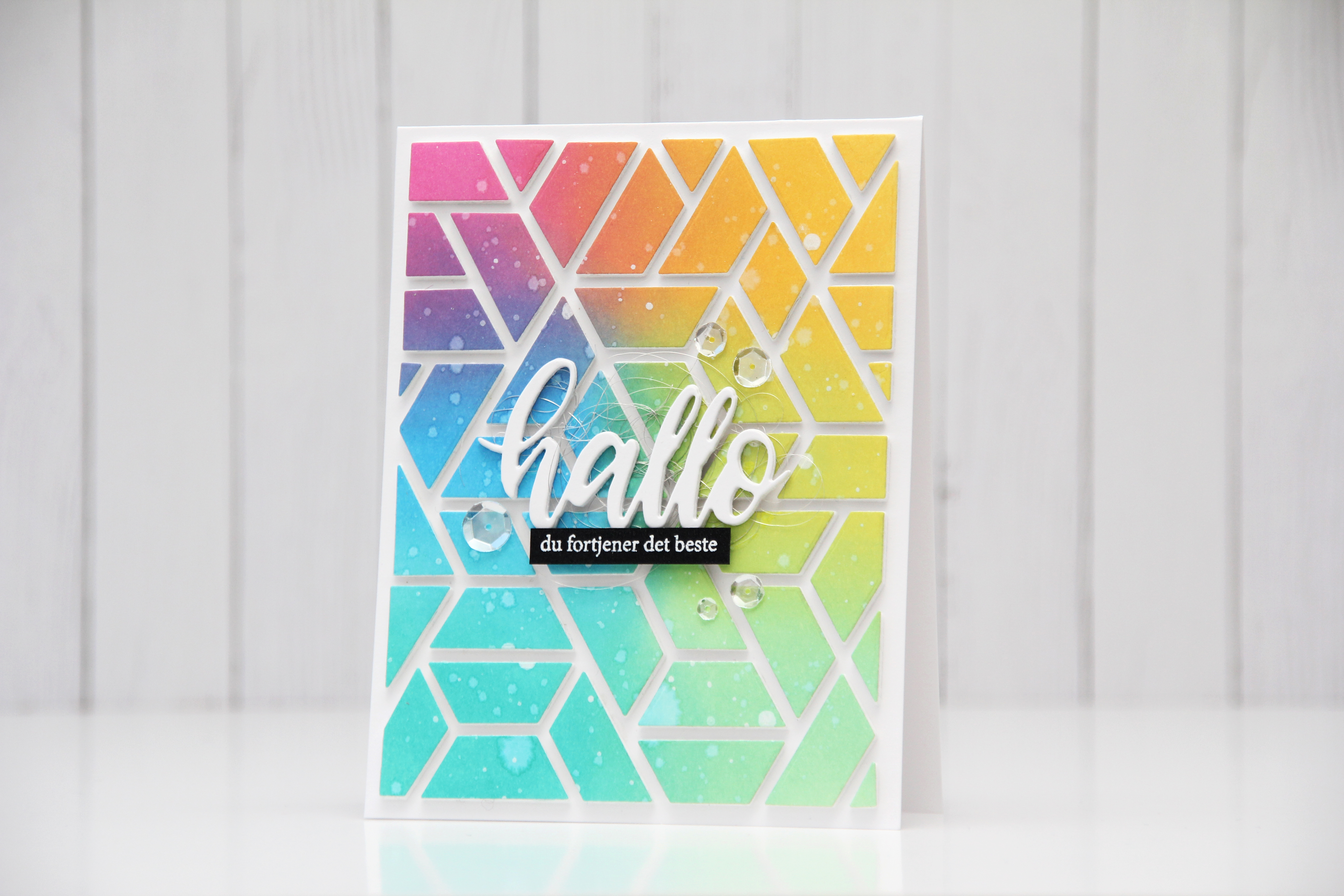 I also diecut the image using a smaller stitched rectangle die from MFT, and popped the panel up on foam tape centered on my card. I used some 1 mm foam squares to adhere my circle diecut with a stamped sentiment from Norsk Stempelblad AS.