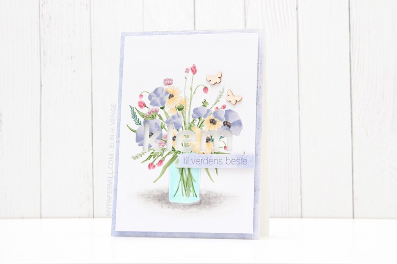 I augustnummeret av Ett trykk hadde vi fokus på mixed media-kort. Mixed media er så absolutt ikke meg, jeg hater jo å bli grisete på fingrene, men jeg fikk jo til noen kort. Dette er ett av dem.